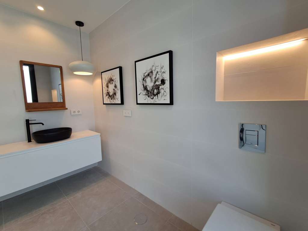 Las villas disponen de 3 baños completos y 1 aseo, equipados con revestimientos porcelánicos de primera calidad.