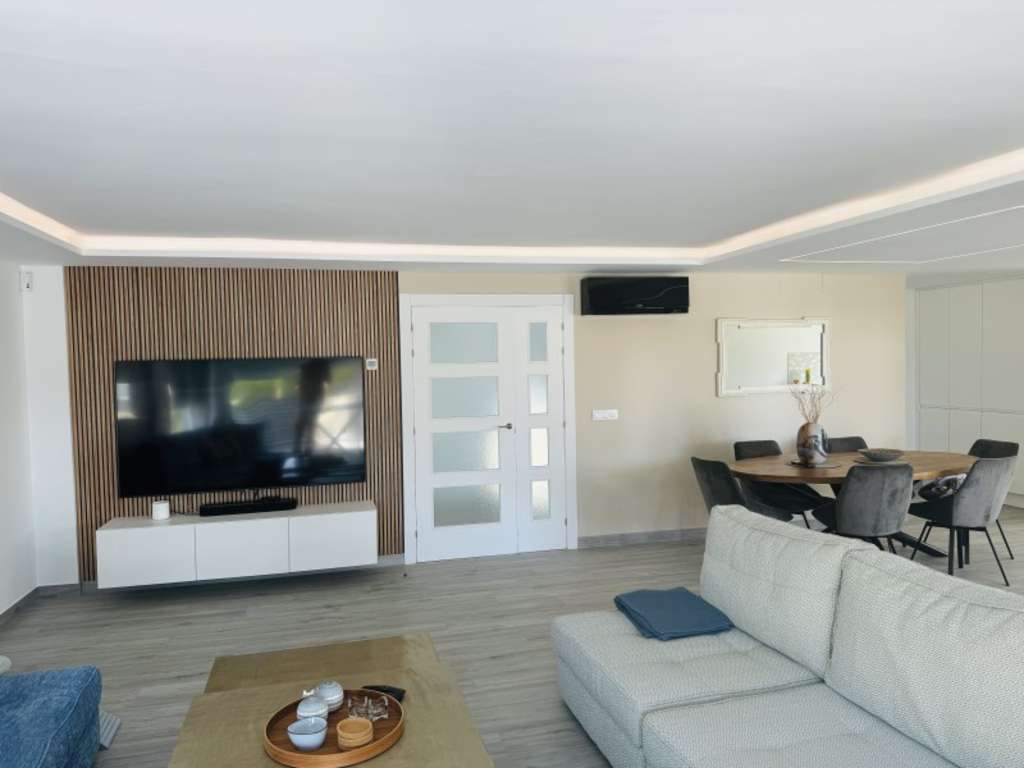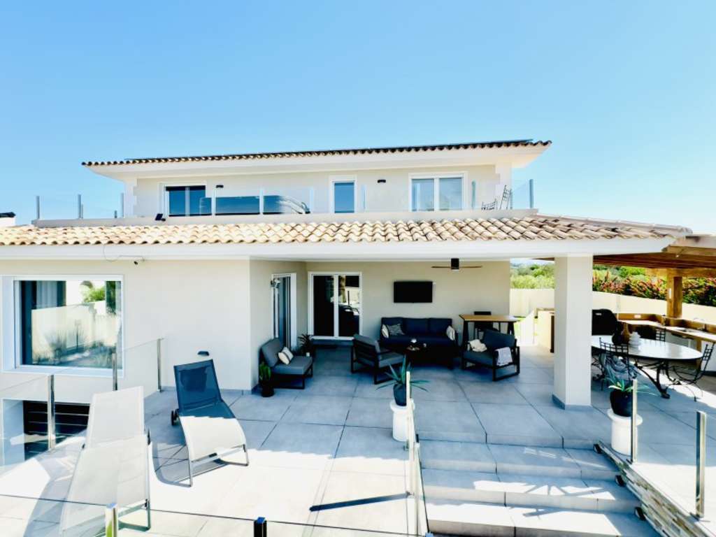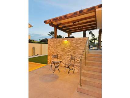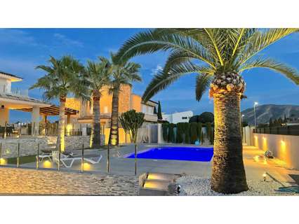 'Impresionante Villa Moderna Reformada en Alfaz del PiCaracterísticas Principales:Ubicación Privilegiada: Situada en una tranquila zona cercana al pueblo de Alfaz del Pi, y situada a tan solo 10 minutos de la playa y 15 minutos de Benidorm, con fácil acceso a todos los servicios y atracciones locales.Espacios Amplios y Luminosos: Con 347 m² de superficie construida y una parcela de 1.250 m², esta villa ofrece un diseño abierto y moderno que conecta las áreas de estar, comedor y cocina.Distribución Funcional: La propiedad se distribuye en dos plantas más un sótano. La planta principal cuenta con un amplio salón-comedor con grandes ventanales, una cocina abierta de alta gama, un dormitorio/oficina y un baño completo. La segunda planta alberga tres dormitorios, dos de ellos en suite, con acceso a terrazas privadas.Zona Exterior Espectacular: Una gran piscina de 11x5 metros con iluminación nocturna, un jardín paisajístico, una terraza con comedor exterior, una pérgola con zona de estar, y una cocina al aire libre con barbacoa. Además, cuenta con una pista de petanca iluminada y un mini green para golf.Confort y Sostenibilidad: Equipada con calefacción por suelo radiante, aire acondicionado, agua potable filtrada, persianas eléctricas, doble acristalamiento, sistema de alarma, y paneles solares que garantizan eficiencia energética y autosuficiencia eléctrica.Garaje y Almacenamiento: Sótano con garaje para un coche, amplio espacio de almacenamiento y acceso directo a la vivienda.Descripción Detallada:Esta villa, completamente reformada en 2023, combina diseño moderno con confort y funcionalidad. En la planta principal, los grandes ventanales permiten la entrada de abundante luz natural, mientras que las luces LED integradas crean un ambiente acogedor por la noche. La cocina abierta con electrodomésticos de alta gama y una isla central es perfecta para el día a día y reuniones.En la planta superior, los dormitorios principales ofrecen total privacidad y amplitud. Destaca el dormitorio principal con vestidor, baño en suite, y acceso a una terraza con jacuzzi y vistas al skyline de Benidorm.El exterior es ideal para disfrutar del clima mediterráneo, con múltiples zonas para relajarse y entretenerse. Desde la piscina iluminada hasta la zona de juegos, cada rincón ha sido diseñado para maximizar el disfrute y la comodidad.Una propiedad lista para entrar a vivir que representa lo mejor del estilo de vida mediterráneo.¡No pierda la oportunidad de visitar esta espectacular villa! Contáctenos para más información o para programar una visita.' ref:VIL_1