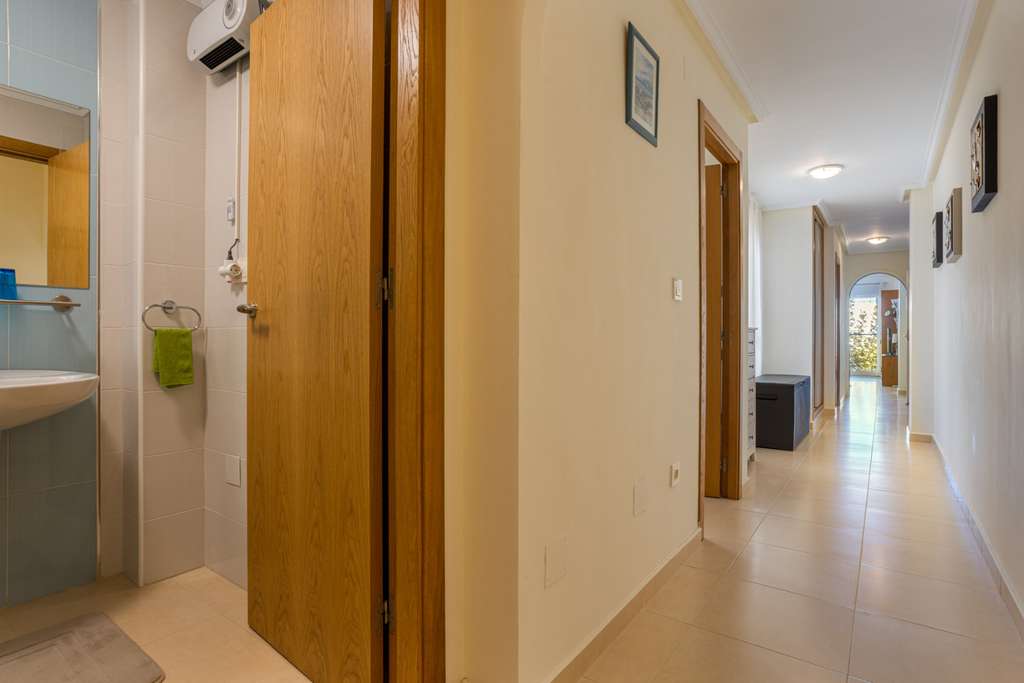 El apartamento cuenta con dos dormitorios con armarios empotrados, además de un armario empotrado adicional en el pasillo, que ofrece amplio espacio de almacenamiento sin sacrificar espacio útil.
