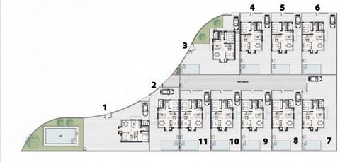 Todas las villas tienen terraza, piscina privada, jardín privado y entrada de vehículos.