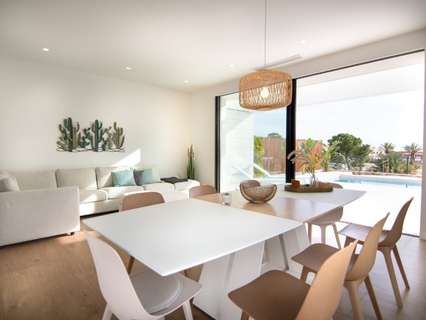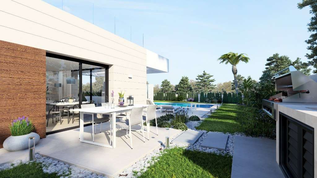 COSTA BLANCA. VILLAS DE NUEVA PROMOCIÓN EN VENTA.Próxima construcción de villas cerca de la prestigiosa urbanización en Los Montesinos, Costa Blanca. El nuevo residencial consta de amplias parcelas ajardinadas con modernas viviendas y piscinas individuales. Las villas tienen su fachada principal orientada al Sur y cuentan con grandes ventanales que permiten la entrada de luz natural durante todo el día. Las villas son con 3 dormitorios de serie. Sin embargo, también tiene la posibilidad de reconstruir una de las habitaciones en la planta baja y tener una cocina, comedor y sala de estar aún más grandes.La casa ofrece una cocina abierta, un comedor y una sala de estar. Detrás de la cocina encontrará dos amplias habitaciones dobles, un baño y un práctico lavadero debajo de la escalera y hasta el primer piso. En el primer piso se encuentra otro baño para visitantes, y la suite principal con su dormitorio y baño. Desde el dormitorio principal se accede al solárium muy amplio con vistas a la terraza y al jardín privado, incluso las vistas a los lagos salados de Torrevieja y la laguna natural.Cada parcela con tamaño promedio es de 366 m2 y ofrece parking privado, trastero y grande terraza además de una piscina privada de 4×8 metros. Las villas están ubicadas en la encantadora ciudad de Los Montesinos. Aquí encontrará una buena selección de restaurantes, supermercados y tiendas. La encantadora plaza del ayuntamiento ofrece el verdadero ambiente español. Un corto viaje lo lleva a Torrevieja, Ciudad Quesada o a las impresionantes playas de arena de La Mata.