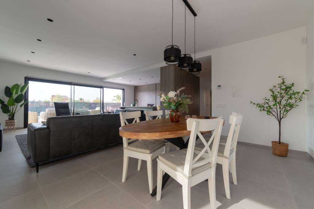 Esta hermosa villa de ensueño en Los Montesinos, en la Costa Blanca, donde el lujo y el espacio ofrecen una experiencia de vida inigualable. Esta villa independiente con jardín privado ofrece mucho más espacio que otras propiedades similares en el mercado, lo que la convierte en una oportunidad única para quienes buscan comodidad y espacio.Al entrar en la villa, encontrará un recibidor con armario. A la izquierda se encuentra el salón-comedor, que también cuenta con una espaciosa cocina abierta con hermosas vistas a la piscina y una terraza cubierta donde podrá disfrutar de los cálidos días de verano. La cocina cuenta con un amplio frigorífico-congelador, perfectamente oculto. Hay dos hornos combinados con microondas, placa de inducción y lavavajillas; en resumen, todo lo necesario. Los amplios ventanales proporcionan abundante luz natural y crean un ambiente cálido y acogedor. Detrás de la cocina se encuentra el lavadero. En la planta baja, hay tres amplios dormitorios y dos baños, uno de ellos en suite. Todos los baños tienen calefacción por suelo radiante. Esta hermosa villa cuenta con ascensor y teléfono, lo que facilita el acceso a todas las plantas. La casa también está adaptada para sillas de ruedas.En la primera planta, hay otro dormitorio muy amplio con baño en suite y vestidor. También hay un trastero con caja fuerte. Desde el dormitorio se accede al solárium de 40 m² con vistas a la terraza privada y a los alrededores, incluyendo las salinas de Torrevieja.El sótano cuenta con un amplio salón de 45 m², un trastero y un garaje de 84 m² con amplio espacio para varios coches.Esta lujosa villa, construida con materiales de alta calidad, ofrece durabilidad, elegancia y máxima eficiencia energética. Dispone de aire acondicionado frío/calor en toda la casa. La villa cuenta con 14 paneles solares. Sus amplias zonas interiores y exteriores la distinguen de la competencia, permitiéndole disfrutar al máximo de su nuevo hogar.A poca distancia a pie del supermercado, restaurantes y bares. En Los Montesinos, encontrará la hermosa plaza junto al ayuntamiento, donde podrá disfrutar del auténtico ambiente español. Un corto trayecto en coche le llevará a Torrevieja, Ciudad Quesada o las hermosas playas de arena de La Mata.