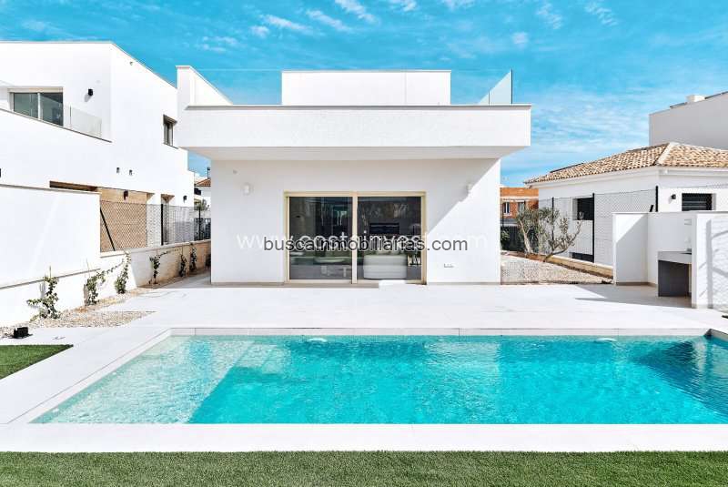 Se vende villa en Los Montesinos. Superficie 110 m2. Precio 439.000 €. La villa tiene 3 habitaciones, 2 baños y piscina.