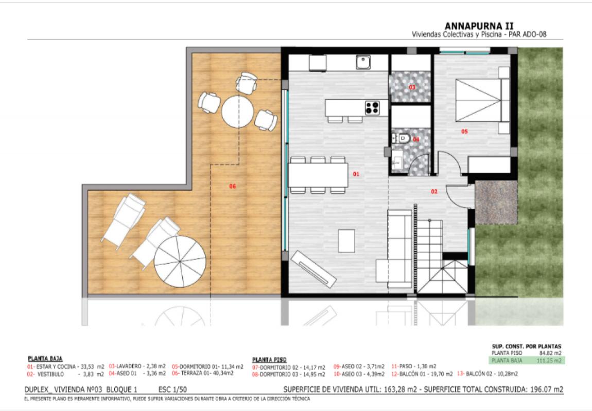 Consiste en 22 viviendas, todas de 3 dormitorios, distribuidas en 2 plantas, que incluyen un solarium y acceso a dos piscinas comunitarias, jardines, y un estacionamiento subterráneo. Cada apartamento ofrece 2 plazas de aparcamiento y un trastero, con la posibilidad de adquirir adicionales según se requiera.