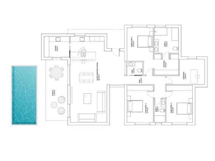 La casa se distribuye en dos grandes zonas:Zona de día: Donde encontramos un amplio salón comedor con cocina abierta tipo office (muebles de cocina incluidos) que conecta con el amplio y moderno porche a través de sus dos grandes ventanales, dando paso a la zona exterior ajardinada y por qué no... a la piscina. La luz inunda cada rincón gracias a los grandes ventanales del salón, que se abren al porche, un espacio moderno y funcional que invita a disfrutar al máximo del aire libre. Imagina pasar las tardes con la familia y los amigos, rodeado de un entorno sereno y natural. Como espacio extra, cuenta con una zona de lavandería estratégicamente situada en la distribución de la vivienda donde será muy fácilmente accesible desde cualquier punto de la casa.Zona de noche o descanso: En esta zona encontramos 4 dormitorios. El dormitorio principal cuenta con un amplio vestidor y baño en suite. Además, un segundo baño para dar servicio al resto de dormitorios y vivienda y un aseo.