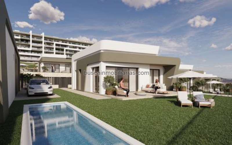 Discover a peaceful and modern lifestyle in these single-story villas for sale in Mutxamel, Alicante. Located just steps from a popular golf course, these stylish homes are designed for comfort, light, and easy living—perfect for enjoying the Mediterranean sun and relaxed surroundings all year round. Each villa includes 3 bedrooms and 2 bathrooms, with a bright open-plan kitchen, a spacious living-dining room, and a separate laundry area. The layout is modern and functional, ideal for family life or holiday living. You also have the option to add a private swimming pool, giving you extra comfort and a space to relax in total privacy. The outdoor areas are made to enjoy the warm climate. A large terrace offers the perfect spot for outdoor dining or sunbathing. Each home also includes off-street parking for two vehicles. Glass railings on the terraces allow for open, panoramic views of the sea and natural landscape, creating a peaceful and beautiful setting. These villas are part of a safe and well-maintained community in Mutxamel. Residents have access to a large communal pool, a social club, children's play areas, and outdoor sports zones. It's an ideal environment for families, retirees, or anyone looking for a healthy and active lifestyle near nature. Built with high-quality materials and modern architecture, the villas offer a blend of style and durability. Large windows fill the spaces with natural light, and the open layout makes the most of the Mediterranean setting. Every detail is made for your comfort and well-being. If you're looking for a new-build villa in Mutxamel close to golf, beaches, and daily amenities, this is a great opportunity. These homes offer the ideal mix of location, design, and value. Don’t miss this chance to own a modern villa near the golf course in Mutxamel, Alicante. Contact us today to schedule your private visit and start your new life under the Spanish sun.