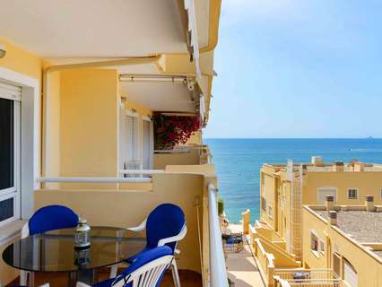 Fantástico Apartamento con vistas panorámicas al mar en primera línea. Planta segunda , orientación sur. El apartamento de 91m2, cuenta con tres dormitorios, dos baños completos (uno en suite), cocina independiente, equipada, salón-comedor y la terraza de unos 15m2. A/A en el salón. Se vende parcialmente amueblado. El residencial con piscina se encuentra justo encima de la playa de Aguamarina y de Campoamor, con accesos privados directos a la playa. El apartamento dispone de plaza de parking y trastero.