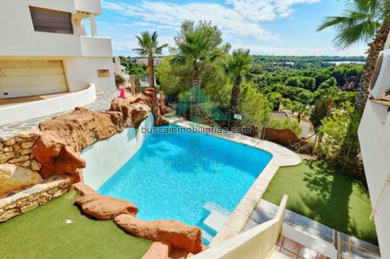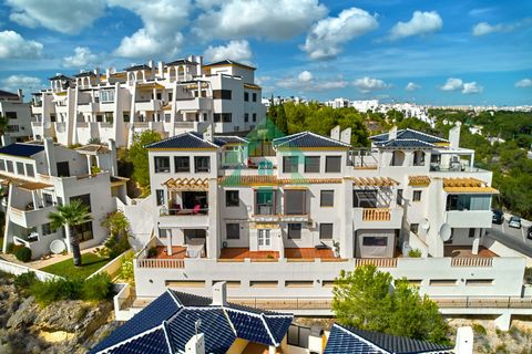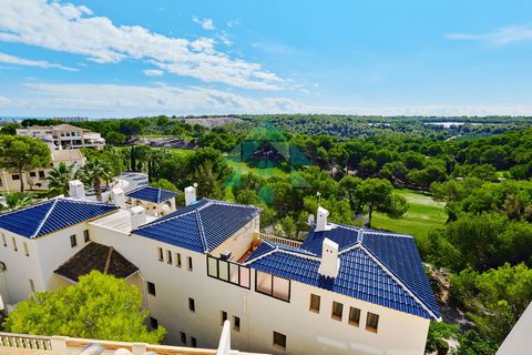 Great opportunity to purchase a 3 bedroom, 2 bathroom penthouse apartment on two floors with amazing panoramic views located in Las Ramblas Golf with access to a communal pool, jacuzzi and within walking distance to the clubhouse. As you enter the front door you’re met with a bright and spacious open plan living/dining room with fireplace, patio doors from the living area lead out onto the sunny balcony with amazing views and sun awnings. The kitchen is semi open plan and leads to a utility area at the rear, a small hallway leads to two bedrooms with fitted wardrobes and a large shower room. An internal staircase from the living area lead up to the first floor and the third bedroom, currently being used as a second living space, the third bedroom has an ensuite bathroom and built in wardrobe. From here is the access to the private solarium featuring sun awnings, a covered seating area and amazing views of the golf course. The current owners have also added a glazed room to the terrace to give additional storage. This property has many benefits such as A/C, gas central heating, ceiling fans throughout and comes with an underground parking space. Viewing is highly recommended.