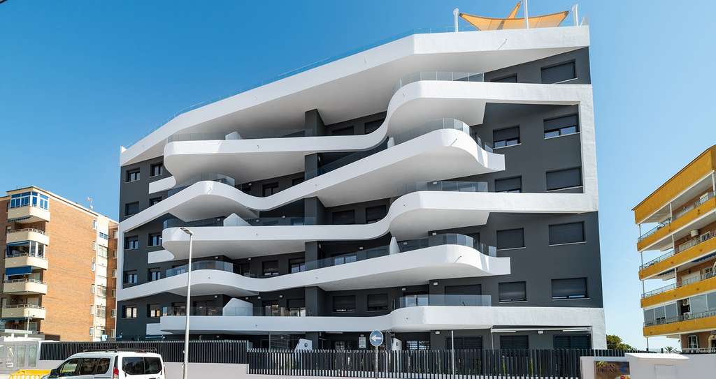 Nuevo complejo residencial formado por modernos apartamentos en Punta Prima, a 300m de la playa.