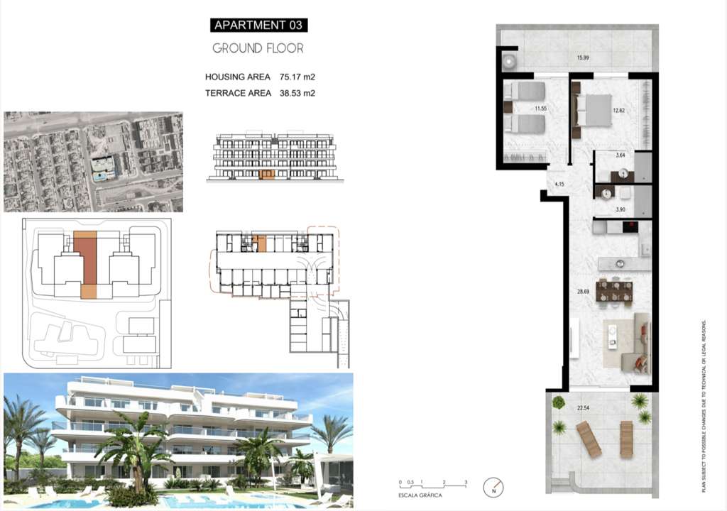 Se vende apartamento en Orihuela (Orihuela-Costa). Superficie 75 m2. Precio 289.590 €. Características: 2 habitaciones, 2 baños y piscina.