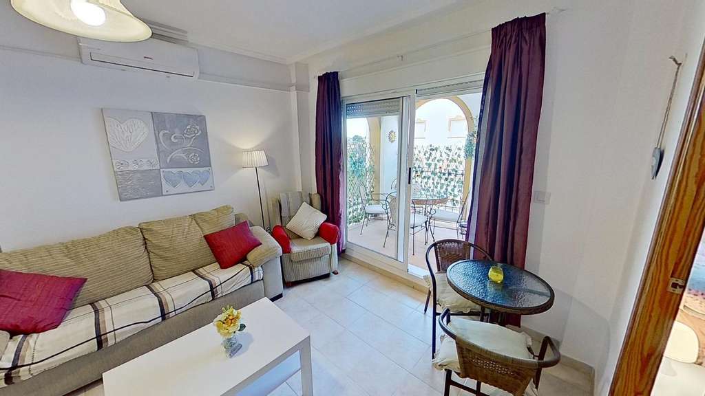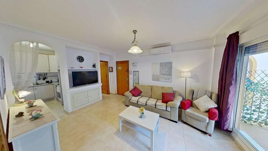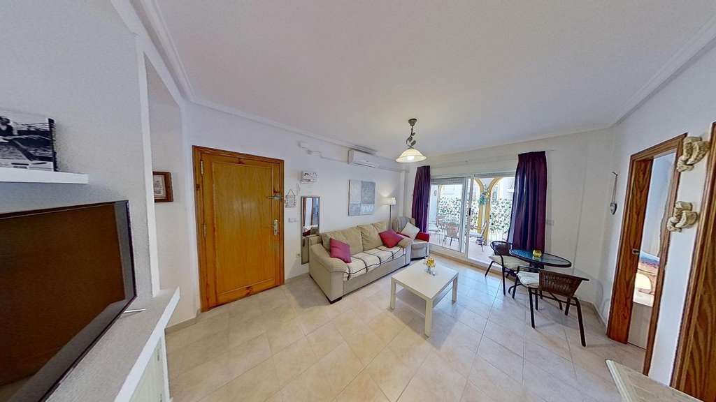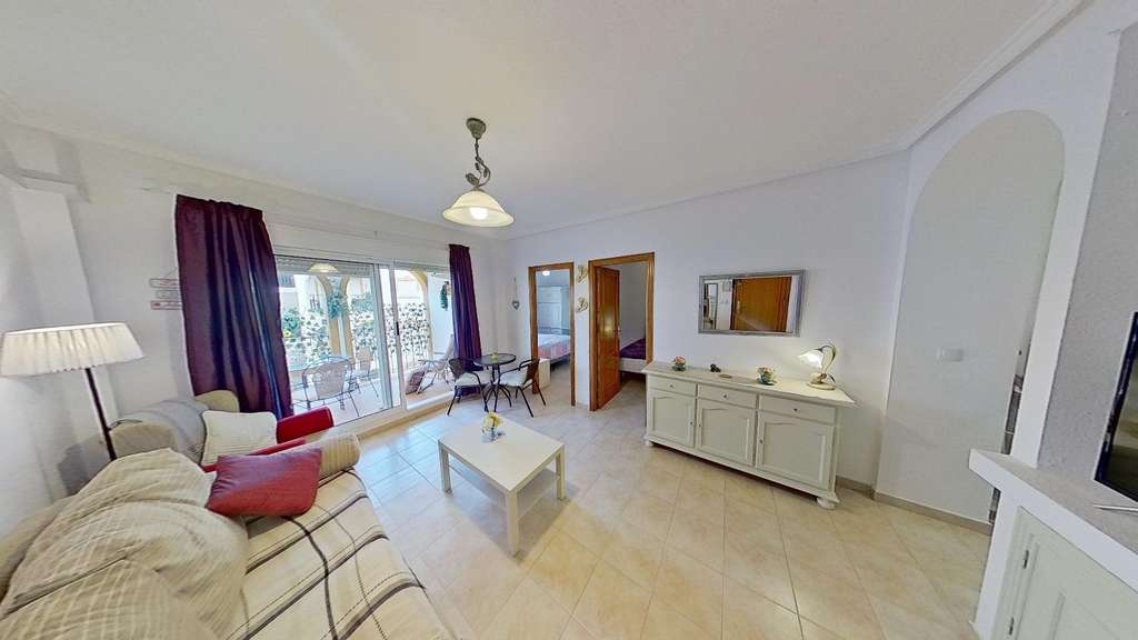 Acogedor apartamento en La Zenia a solo 700 metros de la playa~~Este luminoso y espacioso apartamento en primera planta, de 65 m², está situado en una de las zonas más deseadas de la Costa Blanca, La Zenia. Con una distribución perfectamente aprovechada, cuenta con dos cómodas habitaciones exteriores, un baño completo y una encantadora terraza, ideal para disfrutar del buen tiempo y relajarte al aire libre.~~La propiedad dispone de aire acondicionado, lo que te garantizará el máximo confort durante todo el año, y se complementa con una fantástica piscina comunitaria para disfrutar de momentos de relajación. Además, se encuentra cerca de todos los servicios esenciales, como supermercados, restaurantes y tiendas, lo que hace aún más conveniente su ubicación.~~A tan solo 700 metros de la playa de La Zenia, podrás disfrutar de las maravillosas aguas del Mediterráneo en minutos, haciendo de este apartamento el lugar ideal para vivir o como inversión vacacional.~~¡No dejes pasar esta oportunidad y haz de este encantador apartamentotunuevohogar!