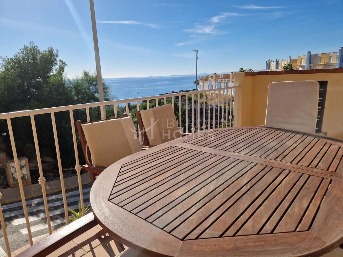 Apartamento primera linea con estupendas vistas al mar enAguamarina en 1ª planta. Vivienda de 80 m2, con 2 dormitorios y 1 baño, salón con acceso a terraza, cocina independiente con lavadero. El apartamento se vende con muebles. Residencial con piscina comunitaria, el precio incluye la plaza de aparcamiento en el garaje subterráneo y el trastero. ¡Una maravillosa casa de vacaciones en la costa mediterránea, para la familia o como inversión!~