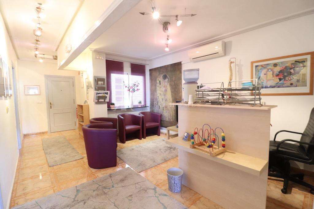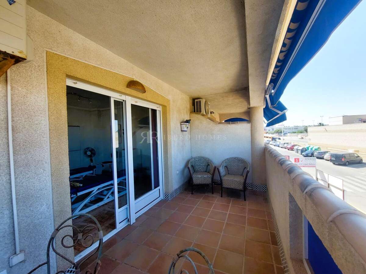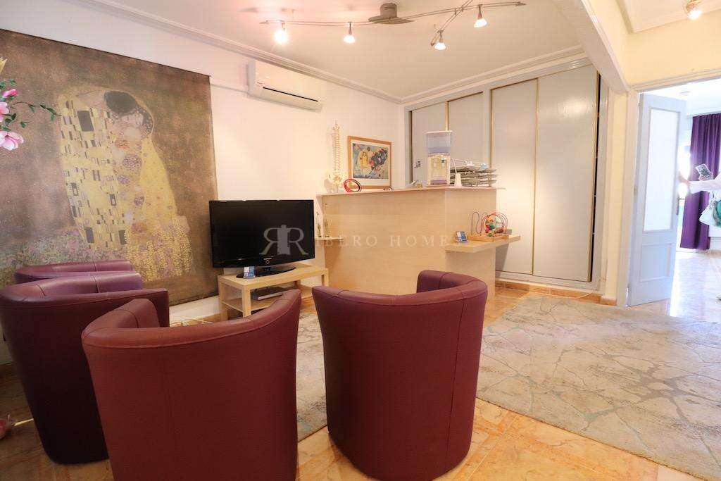 Luminoso y amplio apartamento, situado en la exclusiva zona de La Zenia, en urbanización cerrada, con piscina y cámaras de vigilancia.~~El apartamento tenía 2 dormitorios dobles, 1 amplio baño y cocina abierta al salón-comedor. Actualmente, se utiliza como clínica y uno de los dormitorios se abrió para utilizarlo como recepción. Este cambio es fácilmente reversible, o se puede continuar utilizando el apartamento para cualquier tipo de negocio de esta naturaleza o que requiera de oficina. ~~Cuenta con aire acondicionado y con amplia terraza con vistas despejadas y orientación este.~~A unos minutos de la playa de La Zenia, rodeada de supermercados, restaurantes, bares, parques y parada de taxis y autobús y muy próximo al centro comercial Zenia Boulevard.~~~~