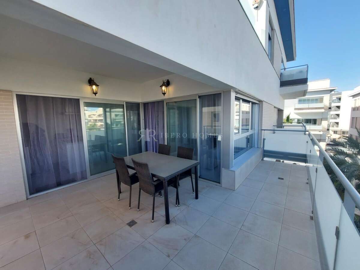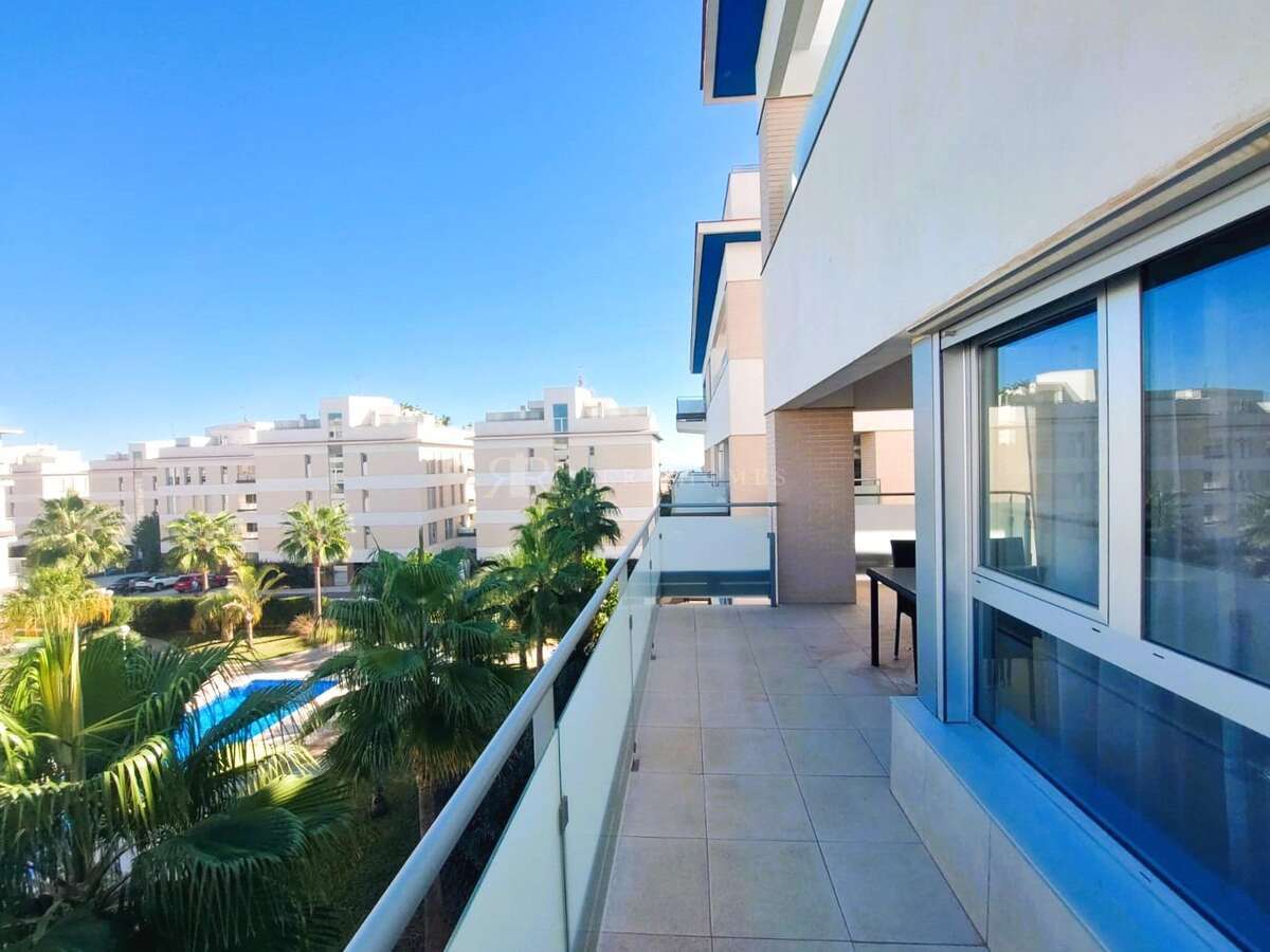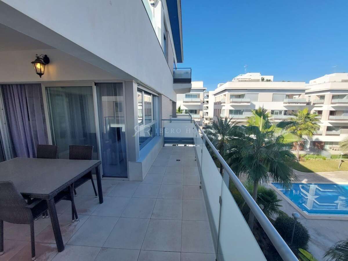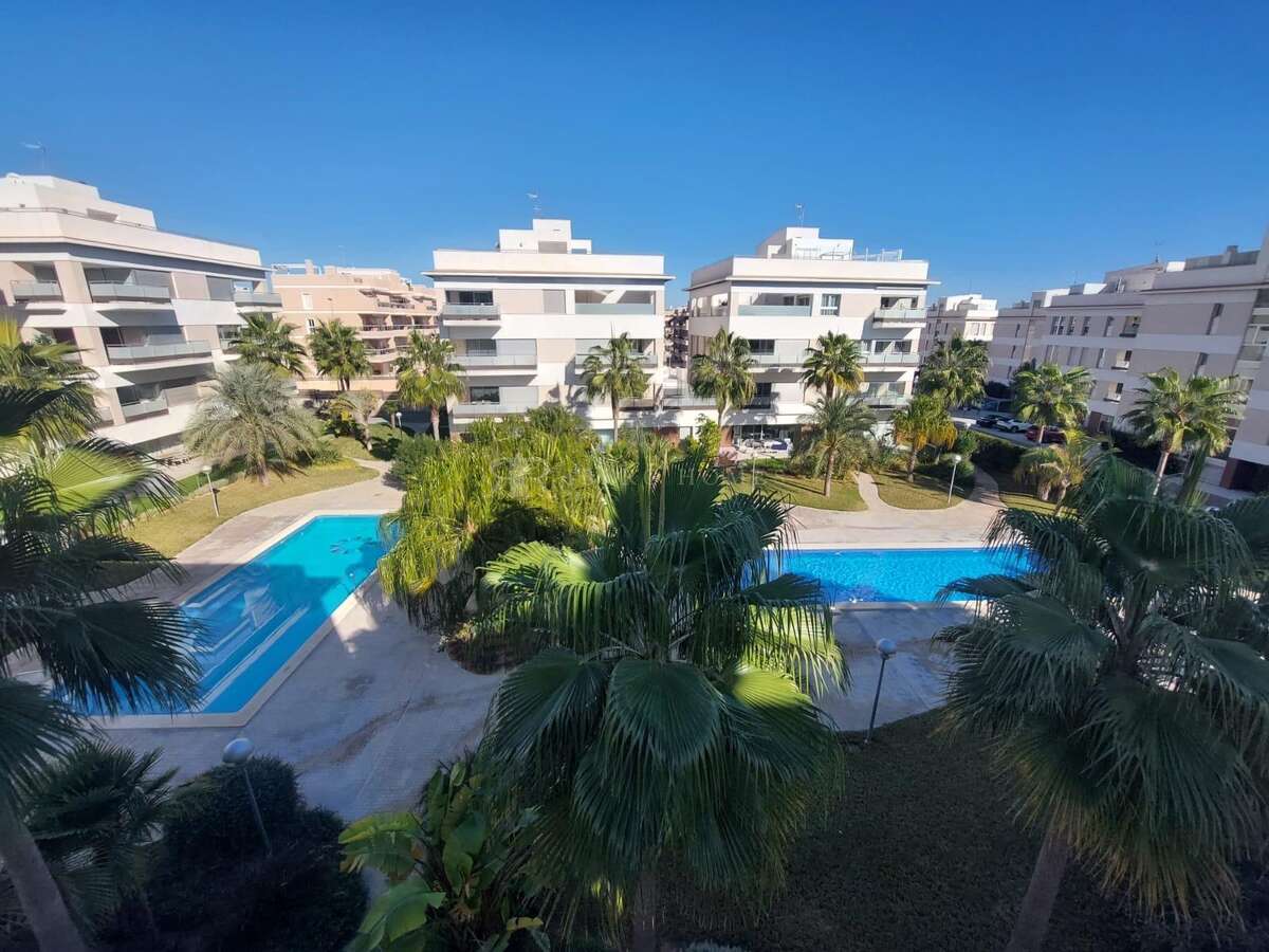 Apartamento en Mirador de Villamartin, moderno y muy amplio apartamento, como nuevo, ubicado en una preciosa urbanización en Villamartín con 2 piscinas grandes, zonas ajardinadas y zonas de aparcamiento. ~~Este apartamento consta de 2 espaciosos dormitorios dobles con armarios empotrados, 2 baños completos, 1 de ellos en-suite, zona de lavandería, preciosa cocina con isla abierta a un salón-comedor muy amplio y con cristaleras de acceso a la terraza de casi 15m2, con vistas a las piscinas y zonas comunes. ~~Tiene aire acondicionado y calefacción por conducto, se vende amueblado y con todo lo necesario para entrar a vivir. Hay un espacio de aparcamiento incluido. ~~Buen acceso a AP-7, muy cerca de varios campos de golf, del centro comercial La Zenia Boulevard, instalaciones deportivas y rodeado de todos los servicios necesarios.~~