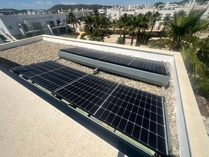 ¡Nueva propiedad! Magnífico ático en el codiciado complejo de golf Vistabella, Residencial Capri 4. El apartamento consta de un salón diáfano con cocina, 2 dormitorios dobles, 2 baños (el principal en suite), terraza orientada al oeste con vistas a los jardines y un soleado solárium con toldos y trastero. La propiedad se entrega completamente amueblada y dispone de aire acondicionado. Gastos de comunidad: 60 € al mes. Suma: 227 € al año.