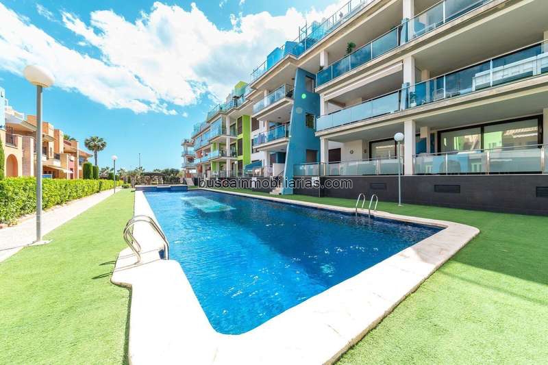 El apartamento se encuentra en la planta baja y ofrece 3 dormitorios y 2 baños, amueblado de forma moderna y con una cocina completamente equipada. Es una vivienda luminosa y agradable, ideal tanto como residencia vacacional como para vivir todo el año.
