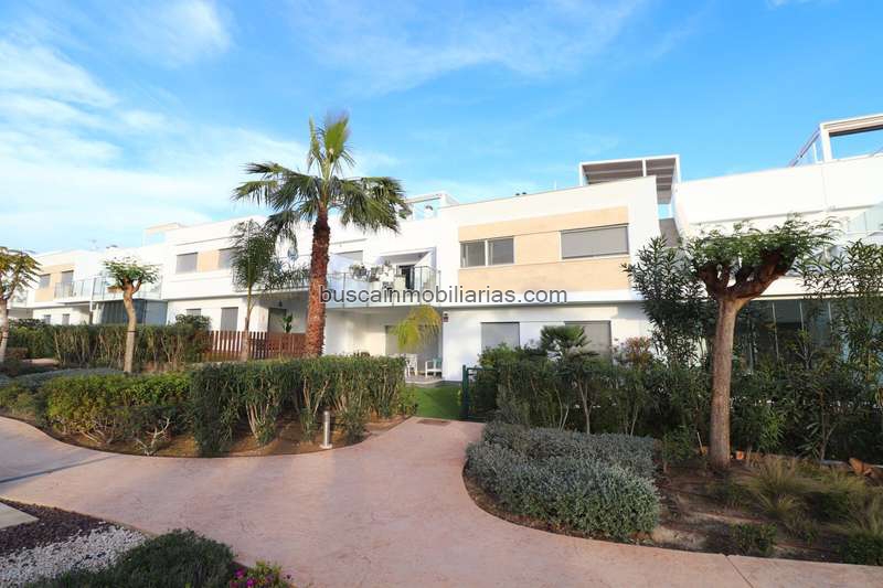 Este moderno apartamento de dos dormitorios en el último piso con orientación oeste en Vista Bella Golf se encuentra en los límites del popular campo de golf, a solo cinco minutos a pie de bares, restaurantes y un supermercado. Convenientemente situado, se encuentra a cinco minutos en coche de Los Montesinos, a diez minutos de Quesada y Benijófar, y aproximadamente a veinte minutos de la costa. Construido en 2019, este elegante apartamento ofrece una amplia sala de estar con grandes puertas corredizas acristaladas que dan a una terraza de tamaño generoso que da a los jardines comunitarios bellamente cuidados. La moderna cocina equipada de planta abierta cuenta con una barra de desayuno sustancial, perfecta para cenas informales y entretenimiento. La propiedad incluye dos habitaciones dobles con armarios empotrados; el dormitorio principal se beneficia de un baño con ducha en suite, mientras que también hay un baño con ducha familiar bien equipado. Las escaleras externas brindan acceso al fantástico solárium privado, que incluye almacenamiento y una sección con toldos, lo que permite cenar cómodamente al aire libre mientras disfruta de las serenas vistas y las impresionantes puestas de sol. Las características adicionales incluyen aire acondicionado por conductos, cuatro paneles solares y un espacio de estacionamiento comunitario asignado. Este moderno apartamento ofrece la combinación ideal de lujo, comodidad y tranquilidad en el corazón de la Costa Blanca Sur.