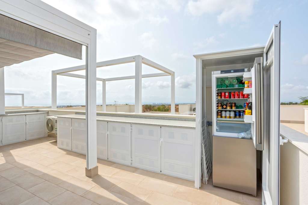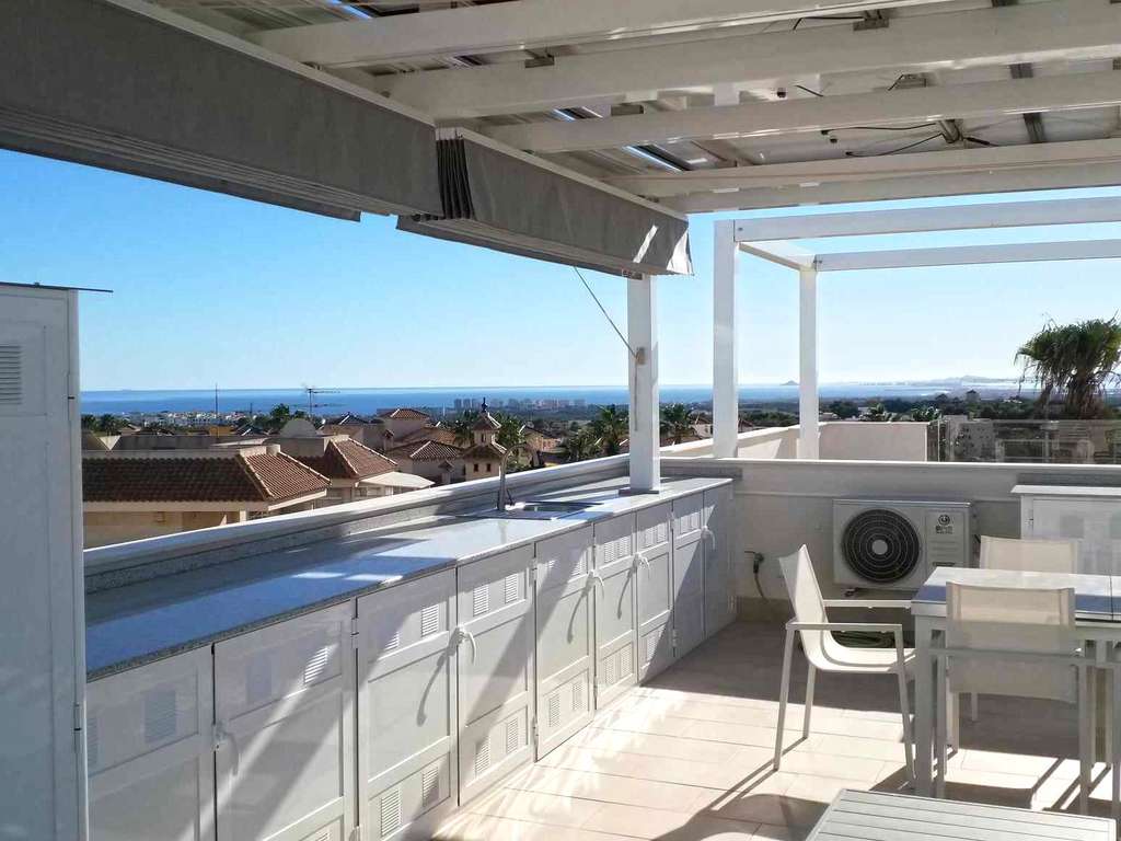 Descubre una Vida Elevada en la Zona de Blue Lagoon Bienvenido a este exclusivo oasis residencial compuesto por dos elegantes edificios, cada uno con seis unidades boutique. Situado en medio de la tranquilidad, este impresionante ático de 2 dormitorios y 2 baños combina lujo moderno, vistas impresionantes y eficiencia excepcional. Diseño Moderno y Vistas Incomparables Entra en un espacio donde el bienestar, la eficiencia y la luminosidad definen tu estilo de vida. Este ático de 79 m² cuenta con un diseño de planta abierta con ventanas de doble acristalamiento que inundan cada rincón de luz natural. La joya de la corona es la terraza privada en la azotea de 87 m² con vistas al mar, las salinas y las montañas. Disfruta de más de 3.000 horas de sol al año con amaneceres y atardeceres majestuosos. Diseñado para el Confort y la Sostenibilidad El lujo y la sostenibilidad se combinan a la perfección. La terraza cuenta con una cocina exterior, una pérgola espaciosa con parasoles horizontales y verticales, y paneles solares de 4100 vatios. También hay una lavadora y una nevera-congelador discretamente ubicadas en la terraza. Estilo de Vida de Resort Relájate junto a la elegante piscina comunitaria, diseñada para tu bienestar y el de tu familia. El complejo incluye parking privado y un trastero para tu comodidad. Totalmente Amueblado y Listo para Entrar a Vivir Este ático se ofrece completamente amueblado y en impecable estado, listo para que empieces a vivir el sueño. Características Clave: 165 m² construidos (79 m² útiles)2 dormitorios y 2 bañosPlaza de garaje incluidaTrastero privadoArmarios empotradosAire acondicionadoPiscina comunitaria y zonas verdes Un Retiro Perfecto Desconéctate del estrés y reconéctate con tu esencia en este paraíso de serenidad. ¡Blue Lagoon te está llamando! Reserva tu visita ahora.