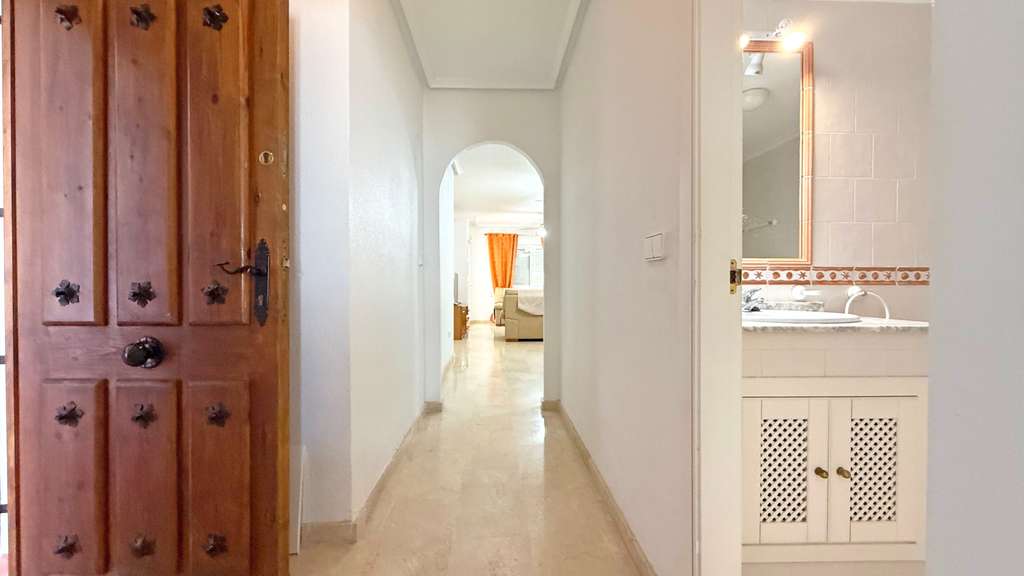 Les presentamos este encantador apartamento en planta baja ubicado en el codiciado residencial Las Violetas, a solo unos pasos de la famosa Plaza Villamartín y del campo de golf. La vivienda ofrece 2 dormitorios y 2 baños, uno de ellos en suite, un salón-comedor amplio y luminoso de planta abierta y un balcón soleado perfecto para relajarse. Se vende completamente amueblado y con aire acondicionado, listo para entrar a vivir. Incluye además plaza de garaje subterránea y trastero privado. La comunidad dispone de jardines bien cuidados y una piscina comunitaria. Con su ubicación inmejorable frente a la Plaza Villamartín y a pocos minutos de las playas de Orihuela Costa, esta propiedad es ideal como vivienda vacacional, inversión de alquiler o residencia permanente.
