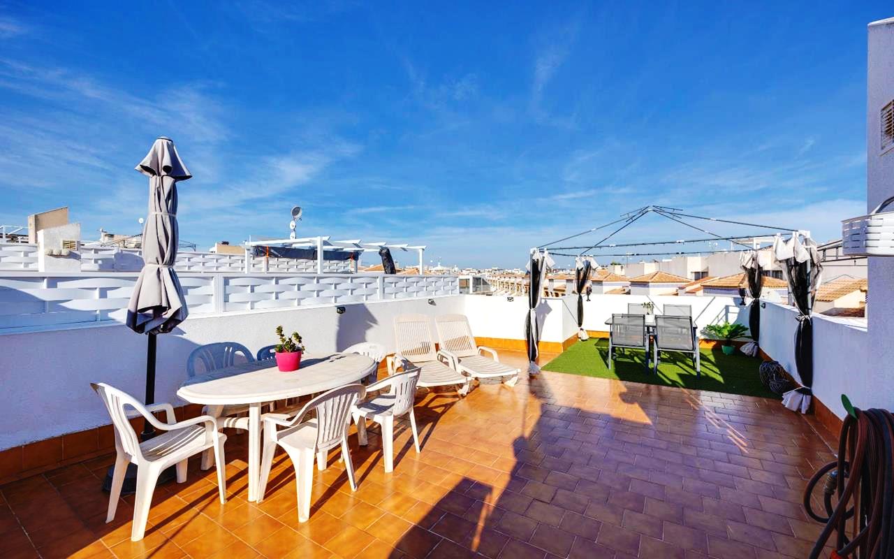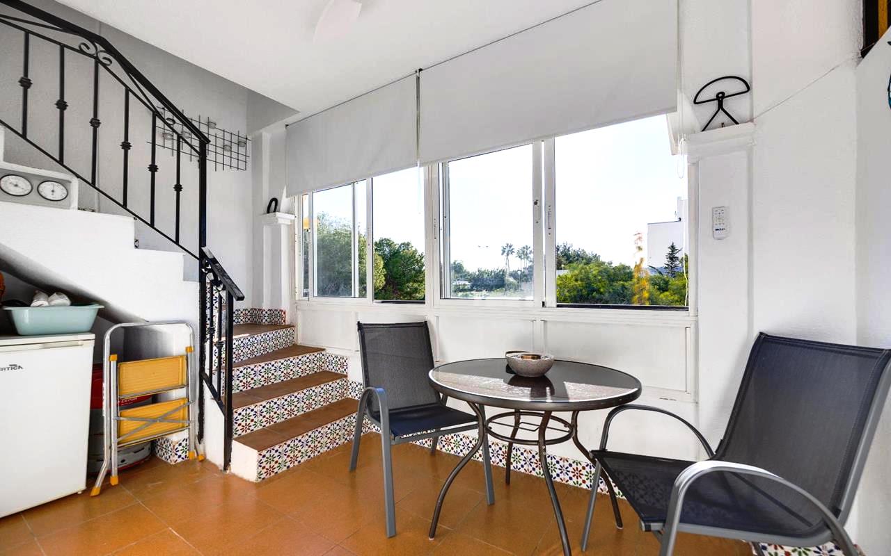 La vivienda cuenta con 2 dormitorios, 1 baño, un luminoso salón-comedor, una cocina totalmente equipada y un amplio solárium privado de 50 m² con trastero, ideal para disfrutar del sol durante todo el año gracias a su excelente orientación sur. Descúbralo en nuestra página web WhiteVillasInSpain.
