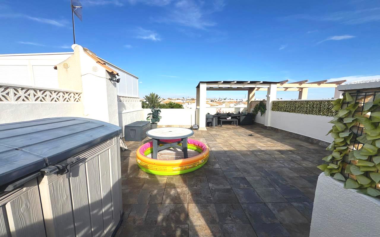 Solárium privado de 49 m², orientado al sureste con vistas despejadas, perfecto como zona de relax o barbacoa.