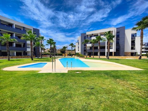 Estupendo apartamento de diseño moderno y de reciente construcción en planta baja y esquina en venta en Res. Amanecer / Sunrise VI - Orihuela Costa.Descubre este elegante y moderno apartamento situado en la planta baja de un prestigioso complejo residencial en Los Altos / La Florida. La propiedad cuenta con una terraza en esquina orientada al suroeste con vistas directas a los preciosos jardines comunitarios y a la piscina.Este luminoso y espacioso apartamento dispone de 2 dormitorios y 2 baños, una moderna zona de estar de concepto abierto y una cocina totalmente equipada con barra americana. La cocina incluye electrodomésticos de alta gama como horno, microondas, frigorífico-congelador, lavavajillas, lavadora y placa vitrocerámica con campana extractora. Para mayor confort, los baños cuentan con calefacción por suelo radiante.Entre sus características adicionales se incluyen ventanas de PVC con persianas eléctricas, aire acondicionado central, y se vende completamente amueblado—listo para entrar a vivir.En el precio se incluye una plaza de aparcamiento subterráneo y un trastero privado.Ubicado en una comunidad cerrada y segura, el complejo ofrece instalaciones excepcionales que incluyen una gran piscina comunitaria, piscina infantil, jardines con palmeras y zonas chill-out, una pista de petanca y un gimnasio con sauna y jacuzzi.Situado en una ubicación ideal, a pocos pasos de un supermercado Aldi y a pocos minutos en coche del reconocido centro comercial Zenia Boulevard y de las hermosas playas de Orihuela Costa.