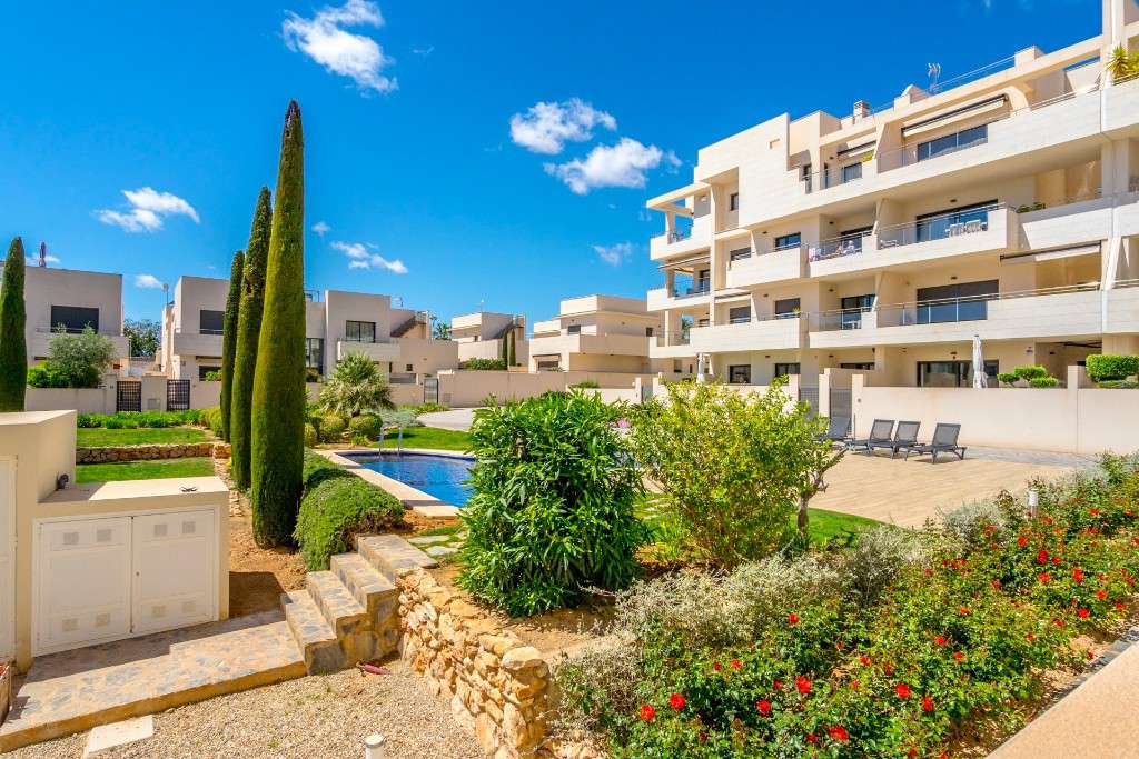 EN VENTA APARTMENTO MODERNO EN LOS DOLSES, CERCA DEL CAMPO DE GOLF EN VILLAMARTIN, COSTA BLANCAEste espacioso apartamento bajo en venta en Jardines de Montesolana, Los Dolses cerca del campo de golf de Villamartin. Esta increíble propiedad tiene una hermosa terraza que da a la piscina y áreas comunitarias y ofrece 2 dormitorios con armarios empotrados, 2 baños, elegante salón con cocina abierta y un gran solárium. En el exterior puede disfrutar de una bonita zona ajardinada con fantásticas instalaciones que incluyen una impresionante zona de piscina grande con vistas a los pinos, piscina interior climatizada, Jardines de inspiración japonesa. El apartamento se vende amueblado con aire acondicionado por conductos y plaza de aparcamiento subterráneo.Bares, restaurantes y supermercados se encuentran a solo 150 metros. Las hermosas playas de La Zenia se encuentran a pocos minutos en coche, así como el centro comercial más grande, La Zenia Boulevard, y un mercado callejero con frutas y verduras frescas. Los Dolses es un lugar ideal para vivir o pasar sus vacaciones con 320 días soleados al año.