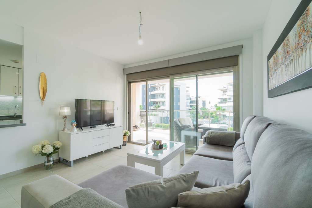 APARTAMENTO CON PISCINA CERCA DE GOLF EN VILLAMARTIN, ORIHUELA COSTATenemos en venta este apartamento con orientación sur del Residencial Villamartín Garden en Villamartín. La casa ubicada cerca del campo de golf de Villamartín ya 3 km de las playas de Orihuela Costa. Esta casa tiene superficie construida de 71 m2 y dispone de 2 dormitorios, 2 baños, salón-comedor, cocina, terraza descubierta. Esta propiedad se beneficia de tener una gran terraza con fantásticas vistas sobre la costa y el hermoso jardín comunitario, zona de piscina. Desde el dormitorio principal tendrá acceso a un balcón con vistas a la calle. La vivienda se encuentra amueblada y con electrodomésticos, con muchas mejoras como ampliación de cocina, armarios empotrados, máquinas de aire acondicionado. Residencial privado con piscina y zonas verdes, ideal para vivir todo el año o pasar unas vacaciones de verano. Plaza de parking en garaje subterráneo incluido.Las playas de Orihuela Costa están a poca distancia de esta propiedad, así como todos los servicios, como supermercados, farmacias, bancos, etc. Nuestros lujosos campos de golf también se encuentran a poca distancia en auto.Esta propiedad se encuentra a pocos km del centro comercial más grande de la provincia, La Zenia Boulevard. La Zenia Boulevard ofrece entretenimiento diario para adultos y niños, así como increíbles restaurantes, bares y tiendas. Tiene más de un ambiente de pueblo que un centro comercial.