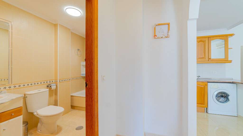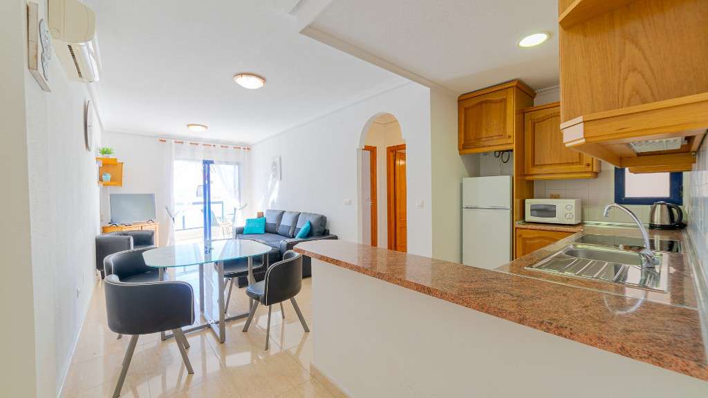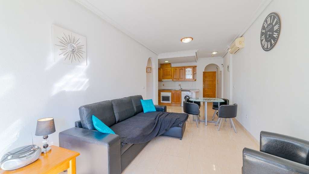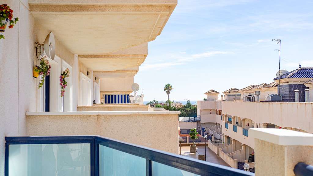 Se vende luminoso apartamento con parking y vistas al mar en La Zenia, Costa Blanca.Le ofrecemos esta bonita y soleada propiedad, situada a solo dos pasos de todos los servicios y a un par de minutos del mar en La Zenia.El apartamento consta de 2 dormitorios, 1 baño amplio, cocina totalmente equipada con barra americana, salón-comedor y un hermoso balcón con vistas al mar. La propiedad se vende amueblada y equipada, y como extra, incluye una plaza de aparcamiento privada en el aparcamiento comunitario subterráneo.La comunidad está bien cuidada y ofrece a sus residentes piscina comunitaria, plazas de aparcamiento, parque infantil, zonas de recreo y proximidad a todo lo necesario para una vida cómoda.¡Bonita propiedad para comenzar tu sueño español!