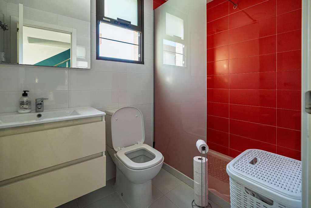 En la planta superior se ubica una habitación amplia tipo suite, también con baño con ducha y acceso directo a un soleado solárium privado, desde donde podrás disfrutar de preciosas vistas.