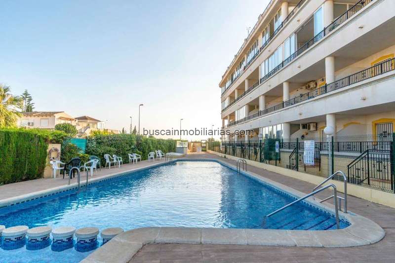 Apartamento luminoso y bien distribuido, situado en la tercera y última planta en la residencial zona de La Mirada Fase 2, en Orihuela Costa.Construido en 2004, la vivienda cuenta con dos dormitorios, un baño, un práctico cuarto de lavandería y un amplio salón-comedor de planta abierta con acceso a un balcón acristalado. Uno de los mayores atractivos de este apartamento es su solárium privado del tamaño de toda la vivienda, perfecto para disfrutar del sol y relajarse al aire libre.La urbanización dispone de una agradable zona comunitaria con piscina, y todos los servicios esenciales se encuentran a poca distancia a pie, incluyendo un colegio escandinavo muy cercano. La playa está a solo 550 metros, ideal para paseos y días junto al mar.Orihuela Costa es una de las zonas residenciales y vacacionales más demandadas de la Costa Blanca, conocida por sus preciosas playas de arena, campos de golf y ambiente internacional relajado. La zona ofrece una amplia variedad de restaurantes, centros comerciales y actividades durante todo el año.Esta propiedad es una opción ideal tanto como vivienda habitual, casa de vacaciones o inversión. ¡Solicita tu visita y descubre un hogar que combina ubicación, espacio y luz natural de forma excepcional!