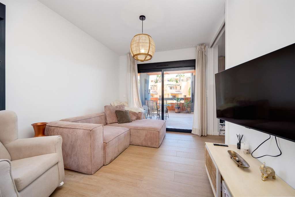 Te presentamos este precioso apartamento situado en la segunda planta de un moderno edificio con ascensor, que destaca por su amplitud, luminosidad y excelente distribución. Con 87 m² construidos, esta vivienda cuenta con 2 cómodos dormitorios y 2 baños completos, ideales para familias, parejas o como segunda residencia. Su orientación este garantiza una excelente entrada de luz natural durante toda la mañana, creando espacios cálidos y agradables. Uno de los mayores atractivos es su espectacular terraza de 35 m², perfecta para disfrutar del aire libre, organizar cenas o simplemente relajarse al sol. La propiedad se entrega totalmente amueblada, con un diseño funcional y acogedor. Está equipada con aire acondicionado, lo que asegura el máximo confort en cualquier época del año. Además, el precio incluye una plaza de parking privada, y el edificio forma parte de una comunidad cuidada que ofrece una hermosa piscina comunitaria, ideal para disfrutar del buen tiempo en un entorno tranquilo y agradable. Una excelente oportunidad para quienes buscan calidad de vida, comodidad y una ubicación inmejorable.