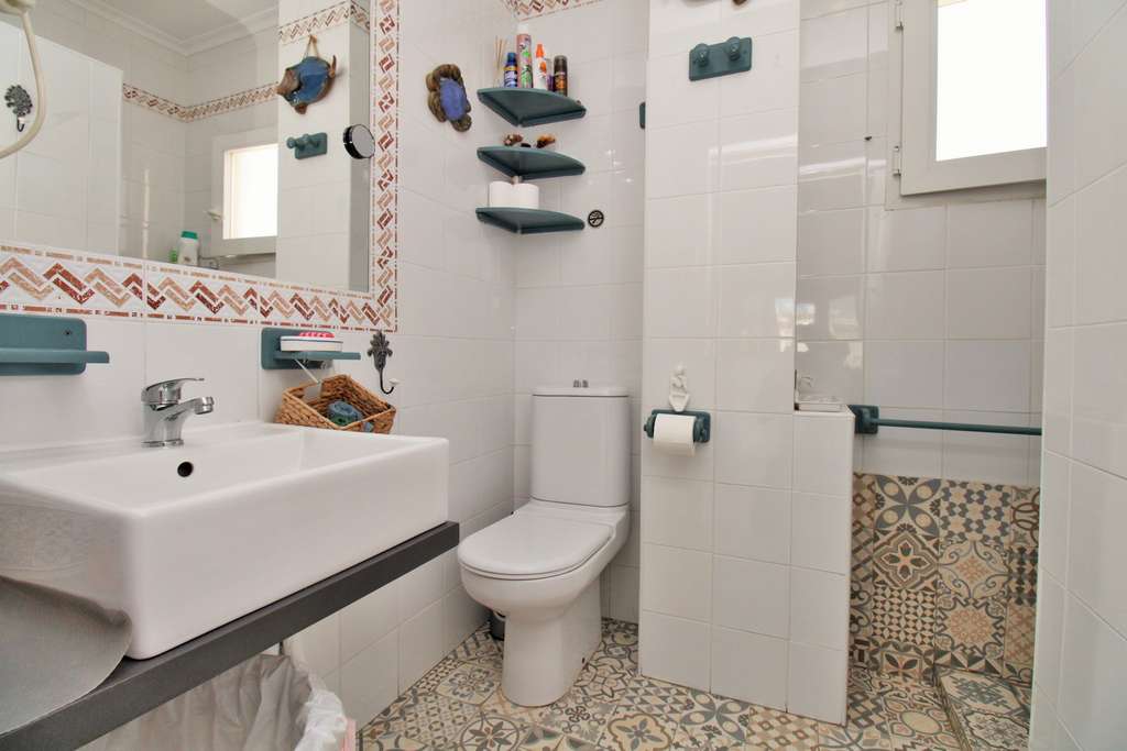 En la planta superior hay dos dormitorios dobles adicionales y un segundo baño contemporáneo. Como broche final, la propiedad dispone de un solárium privado con barbacoa, desde donde se disfrutan preciosas vistas al mar y a las zonas comunes.