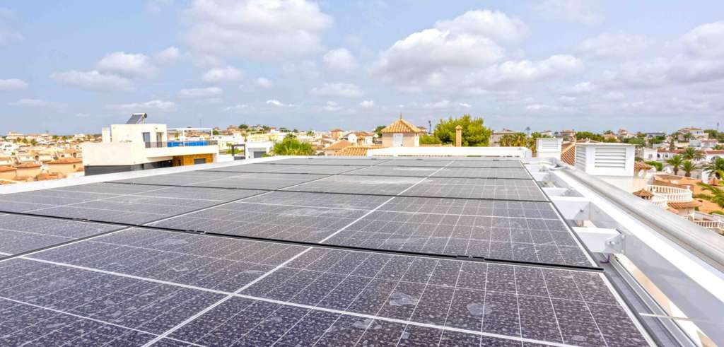 El lujo y la sostenibilidad se combinan a la perfección. La terraza cuenta con una cocina exterior, una pérgola espaciosa con parasoles horizontales y verticales, y paneles solares de 4100 vatios. También hay una lavadora y una nevera-congelador discretamente ubicadas en la terraza.