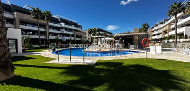 Ubicación privilegiada:Situado en el exclusivo residencial Flamenca Village, en Playa Flamenca.A 3 minutos andando de la playa y a 1 minuto de centros comerciales como Zenia Boulevard.Rodeado de todos los servicios esenciales: supermercados, restaurantes, centros médicos y los mejores colegios de la zona.Características del piso:2 luminosas habitaciones con armarios empotrados.1 baño completo.Cocina abierta que se conecta con un amplio salón, creando un ambiente moderno y acogedor.Amplia terraza ideal para disfrutar del buen clima mediterráneo durante todo el año.Instalaciones del residencial:Gimnasio totalmente equipado.Piscinas comunitarias para adultos y niños.Sauna para relajarse.Extensas zonas verdes bien cuidadas.Restaurantes y bares dentro del propio complejo, ofreciendo comodidad sin necesidad de salir del residencial.Perfecto para vivir o invertir:Ideal tanto como residencia permanente como para una segunda vivienda vacacional.Excelente opción de inversión gracias a la alta demanda de alquiler turístico en Playa Flamenca.Oportunidad de disfrutar de un estilo de vida moderno y cómodo en una de las mejores zonas de la Costa Blanca.