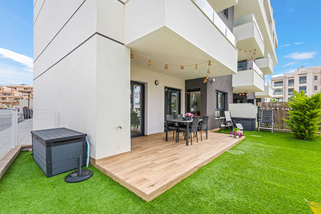 Este moderno apartamento esquinero en planta baja, con 2 dormitorios y 2 baños, se encuentra en Villamartín, Alicante, en una ubicación privilegiada, a solo unos minutos a pie de todos los servicios locales (restaurantes, bares y tiendas). La fantástica playa de La Zenia y el centro comercial La Zenia Boulevard también están a 10 minutos en coche. Villamartín Plaza y Villamartín Golf están a menos de 4 minutos. La propiedad consta de un amplio salón, una cocina-comedor de concepto abierto, persianas eléctricas, aire acondicionado (frío/calor) en toda la vivienda, un dormitorio principal con armarios empotrados y baño en suite, otro dormitorio de invitados también con armarios empotrados y un segundo baño con ducha a ras de suelo. Las puertas del patio dan a una terraza privada (con un pequeño lavadero) para disfrutar del sol todo el día. También se incluye una plaza de aparcamiento privada asignada. Hay una preciosa zona verde comunitaria con piscina, pista de petanca, parque infantil y un hermoso parque comunitario. Estos apartamentos tienen una excelente relación calidad-precio y su ubicación es excelente, con bares, restaurantes y servicios a un corto paseo. La zona de Villamartín es muy popular entre los turistas y la mayor parte de su población está formada por comunidades de expatriados de Europa Occidental que se han establecido allí en los últimos 10 años, transformando prácticamente el pueblo en una ciudad de aspecto moderno. También hay otros campos de golf en las cercanías y numerosas playas de arena blanca.