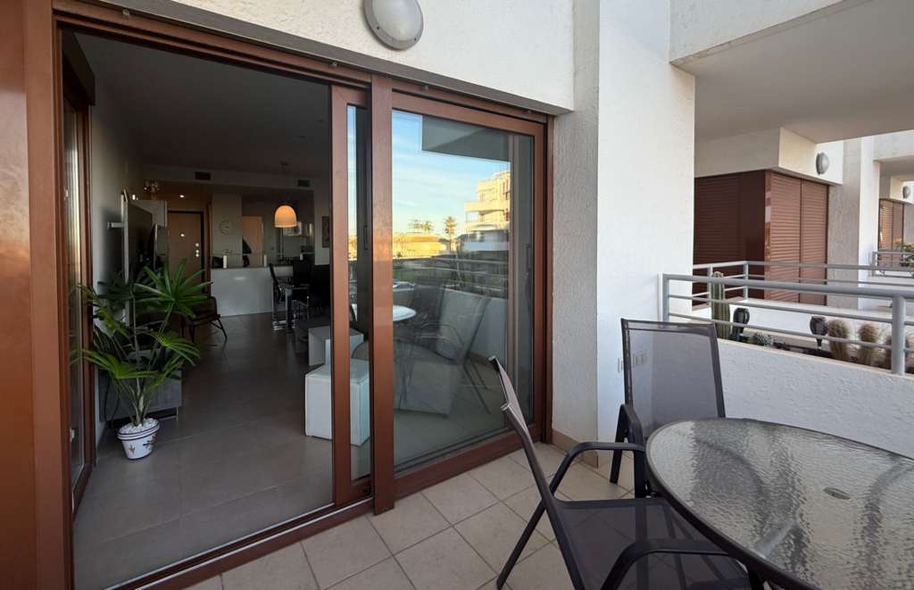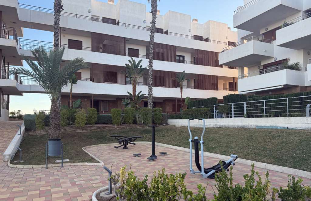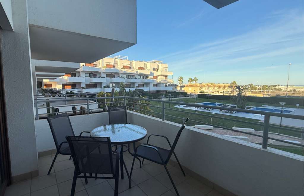 Esta espectacular propiedad, construida originalmente en 2017, cuenta con 84 m² construidos y una terraza de 18 m². El bloque de apartamentos está concebido como un refugio mediterráneo contemporáneo, priorizando una atmósfera de relajación y calma para sus residentes. La arquitectura integra líneas modernas y limpias con la calidez de los materiales tradicionales mediterráneos, creando una estética equilibrada y sofisticada. Los balcones privados, las terrazas sombreadas y los patios ajardinados diseñados con atención al detalle ofrecen a los residentes espacios tranquilos para el descanso y la reflexión. Las zonas comunes están pensadas para favorecer el bienestar, con iluminación suave, vegetación abundante y espacios cuidadosamente organizados que fomentan un ambiente tranquilo y pausado. El apartamento, orientado al sur, ofrece vistas al jardín comunitario, permitiéndole disfrutar del sol desde la comodidad de su hogar durante 325 días al año. La comunidad dispone de una variedad de servicios comunes, como una piscina, un jardín mantenido regularmente e incluso una zona de juegos para los más pequeños. En Lomas de Cabo Roig, estará cerca de todos los servicios que pueda necesitar. Supermercados, farmacias y restaurantes en pueblos cercanos están a poca distancia, y se encuentra a solo unos 10 minutos del famoso campo de golf Las Colinas. Para los amantes de la playa, está a tan solo unos minutos de una playa de arena amplia de un kilómetro de longitud. Si le interesa jugar al golf, está en el lugar adecuado, ya que en un radio de 8 km puede encontrar cuatro campos de golf de 18 hoyos, incluidos Villamartín Golf, Campoamor Real Golf Club, Las Ramblas Golf y Las Colinas Golf Course.