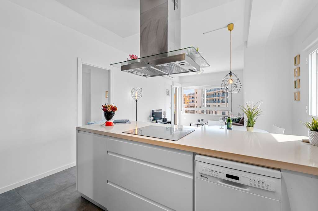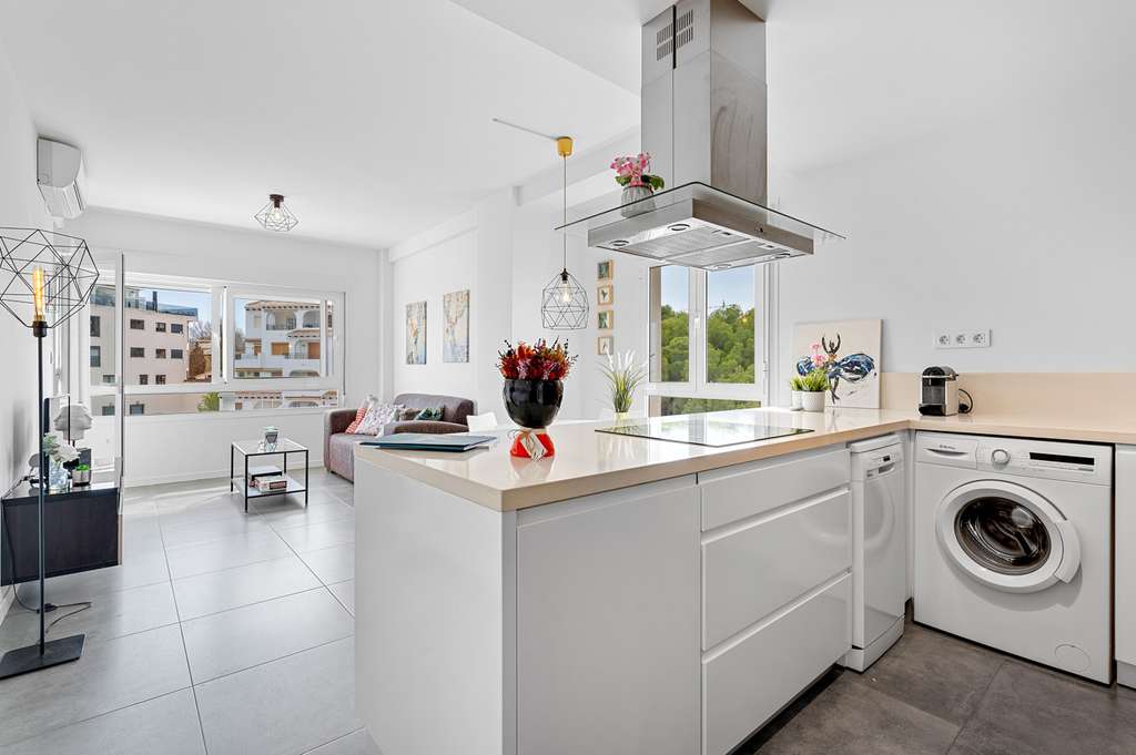 La cocina de estilo americano ofrece mucho espacio de almacenamiento y está totalmente equipada con todo lo necesario para la vida diaria.