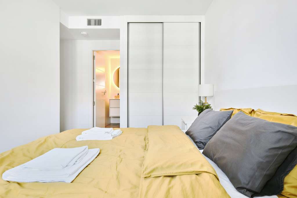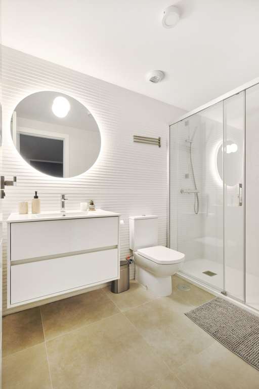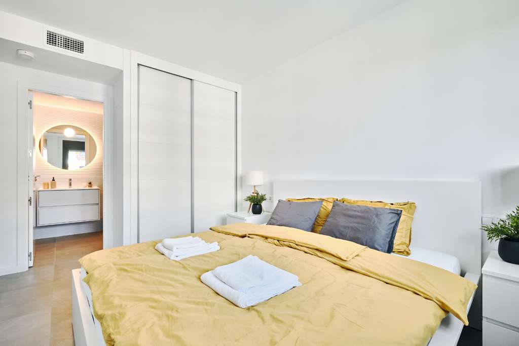 Esta vivienda ofrece tres dormitorios amplios y luminosos con armarios empotrados que combinan funcionalidad y elegancia. Los dos baños modernos, con duchas a ras de suelo y grifería de alta calidad, garantizan el confort diario y un ambiente relajante.