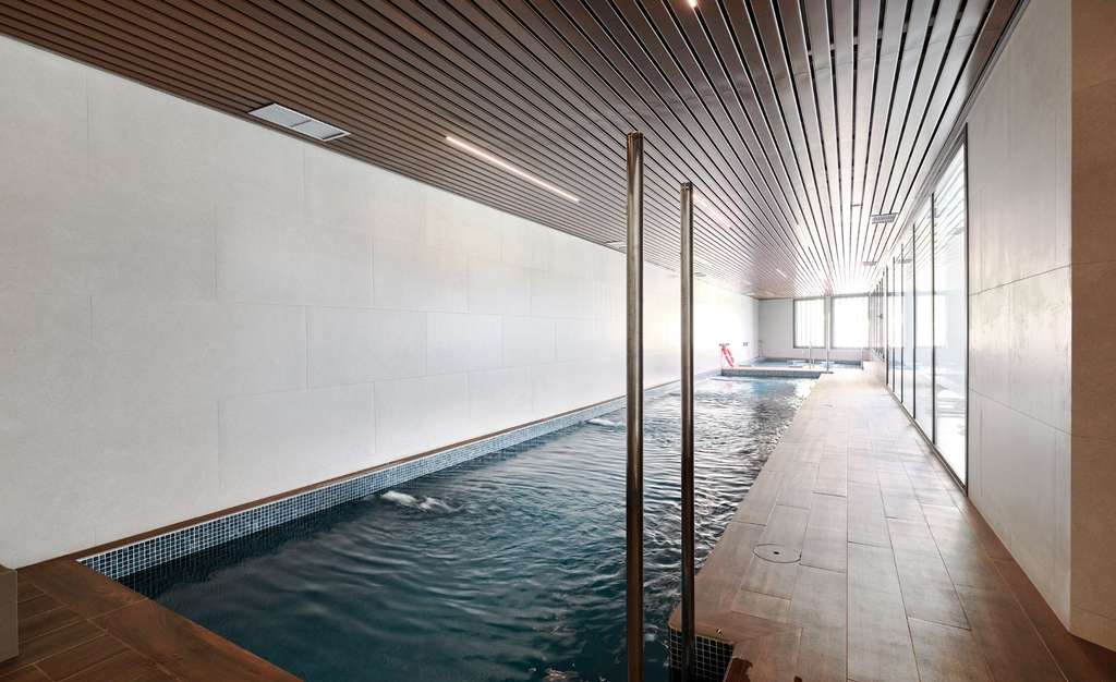 El complejo cuenta con exclusivas zonas comunes, que incluyen dos piscinas exteriores, un gimnasio, una piscina interior climatizada , un jacuzzi y una preciosa terraza compartida en la azotea con cocina común, alojamiento para huéspedes y vistas panorámicas al mar. Esto crea un ambiente único para la relajación y la convivencia.