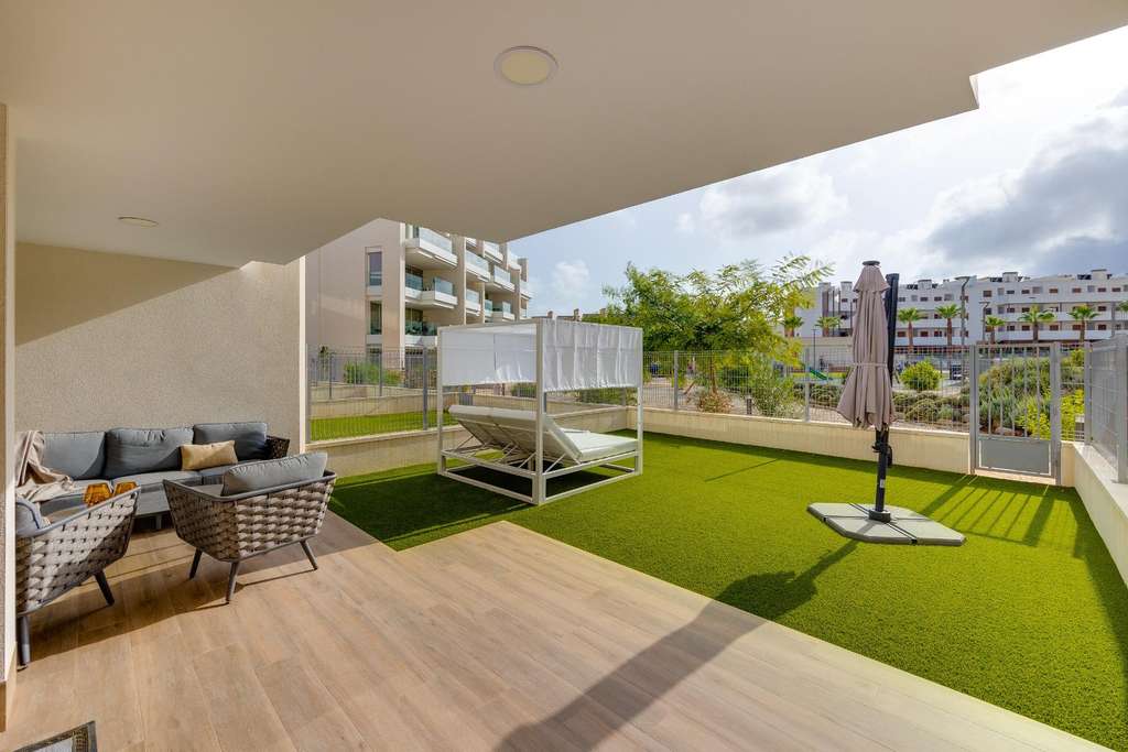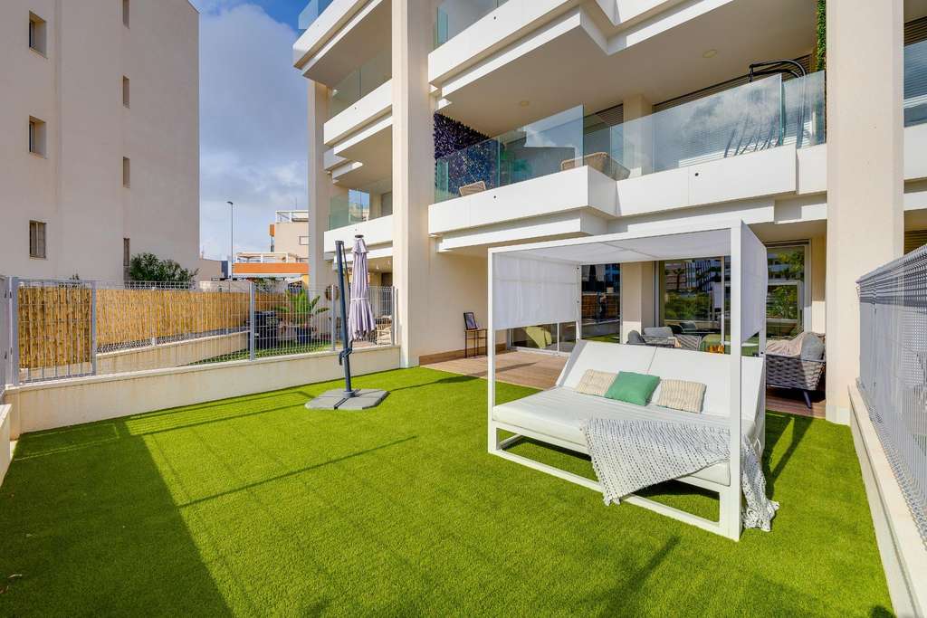 Descubre este espectacular apartamento prácticamente nuevo, construido en 2023, situado en uno de los residenciales más exclusivos y tranquilos de Villamartín (Orihuela Costa), RESICENCIAL EMA. Un hogar perfecto tanto para vivir todo el año como para disfrutar de unas vacaciones junto al mar. El residencial es cerrado y muy completo, con amplias zonas verdes, parque infantil, piscinas comunitarias para adultos y niños, y espacios comunes ideales para relajarse o disfrutar en familia. Además, se encuentra cerca de todos los servicios esenciales: supermercados, restaurantes, zonas de ocio, campos de golf y a pocos minutos de las playas de Orihuela Costa. La vivienda destaca por su diseño moderno y luminoso. Dispone de un amplio salón-comedor con cocina abierta completamente equipada con electrodomésticos de última generación y acceso a una galería y zona de lavandería. 2 dormitorios dobles con armarios empotrados y 2 baños completos con plato de ducha, uno de ellos en suite. Desde el salón y uno de los dormitorios se accede a una terraza con jardín privado de 60m2, muy soleada gracias a su orientación sur, ideal para disfrutar del clima mediterráneo durante todo el año. Además, la propiedad incluye plaza de parking privada dentro del residencial y zona de aparcamiento para bicicletas. Ubicación, confort y estilo se combinan en esta vivienda lista para entrar a vivir. ¡Una oportunidad única en Villamartín!