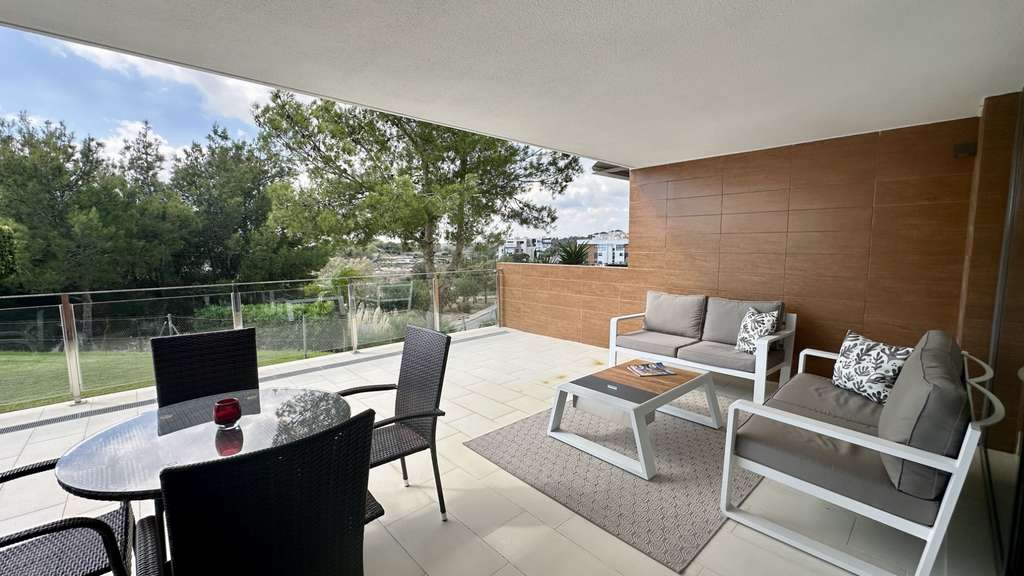 Nos complace presentar este magnífico apartamento en planta baja, cuidadosamente mantenido, en el corazón de Villamartín — una de las zonas más populares de Orihuela Costa. Esta elegante vivienda de 2 dormitorios y 2 baños está lista para entrar a vivir y ofrece la combinación perfecta de confort, diseño y vida al aire libre. Al entrar, le recibe un interior luminoso y moderno con cocina americana, amplio salón y lavadero independiente. La vivienda cuenta con dos terrazas de gran tamaño — una en la parte delantera y otra en la trasera — para disfrutar de sol o sombra durante todo el día. La terraza trasera da a la cuidada piscina comunitaria y a los jardines, creando un espacio tranquilo para relajarse. La terraza delantera incluso tiene espacio suficiente para aparcar su coche dentro de la parcela privada. Construida en 2013, la propiedad presume de un diseño limpio y contemporáneo con armarios empotrados, aire acondicionado y acabados de alta calidad. Situada en una zona tranquila pero céntrica, es ideal tanto como residencia permanente, casa de vacaciones o inversión segura. Características principales: 2 amplios dormitorios y 2 baños 79 m² construidos, 60 m² útiles Dos grandes terrazas + aparcamiento privado Cocina equipada + lavadero Armarios empotrados, aire acondicionado Hermosa piscina y jardín comunitario Edificio eficiente energéticamente (certificado) Acceso por ascensor y comunidad cerrada Plaza de garaje privada incluida en el precio Orientación sur – luz todo el día Ubicación inmejorable: Villamartín es un destino vibrante todo el año, conocido por sus campos de golf, su comunidad internacional y excelentes servicios. Disfrute de 4 campos de golf de primer nivel en las cercanías (incluido Las Colinas, considerado de los mejores de España), además de una gran variedad de restaurantes, bares, supermercados y entretenimiento. La Zenia Boulevard, el mayor centro comercial de la Costa Blanca, está a pocos minutos. Playas, cines, karting y mucho más — todo a su alcance. Una vivienda ideal para quienes buscan un apartamento elegante, fácil de mantener y en una ubicación privilegiada con gran potencial de alquiler. No deje escapar esta oportunidad — contáctenos hoy mismo para concertar una visita privada. Bienvenido a su nuevo hogar.