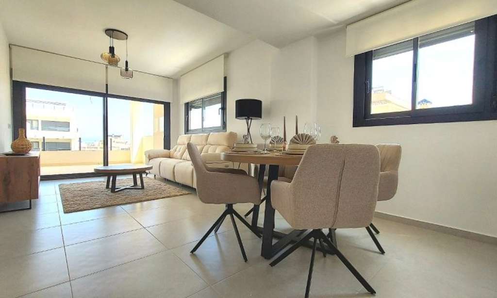 Descubre esta espectacular vivienda de 3 dormitorios y 2 baños, ubicada en un elegante residencial privado en Villamartín, Orihuela Costa, una de las zonas más demandadas de la Costa Blanca.La propiedad, completamente a estrenar, destaca por su diseño contemporáneo, líneas limpias y una cuidada decoración moderna que combina funcionalidad y estilo. La vivienda ofrece un amplio y luminoso salón-comedor con grandes ventanales que conectan con el exterior, creando una sensación de amplitud y confort durante todo el año.La cocina, integrada en el espacio principal, presenta un diseño actual y práctico, ideal tanto para el día a día como para disfrutar en familia o con amigos.Dispone de tres dormitorios espaciosos, todos con excelente entrada de luz natural, y dos baños completos con acabados modernos y materiales de alta calidad.Ubicada dentro de un residencial privado con amplias zonas verdes y piscina comunitaria, la vivienda ofrece un entorno tranquilo, seguro y perfectamente cuidado, ideal tanto como residencia habitual como para inversión o segunda vivienda.???? Situada en Villamartín, a pocos minutos de campos de golf, centros comerciales, servicios, restaurantes y las mejores playas de Orihuela Costa.Una oportunidad perfecta para disfrutar del estilo de vida mediterráneo en una vivienda nueva, moderna y lista para entrar a vivir.