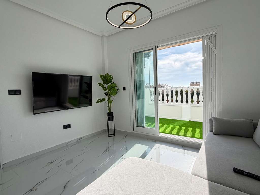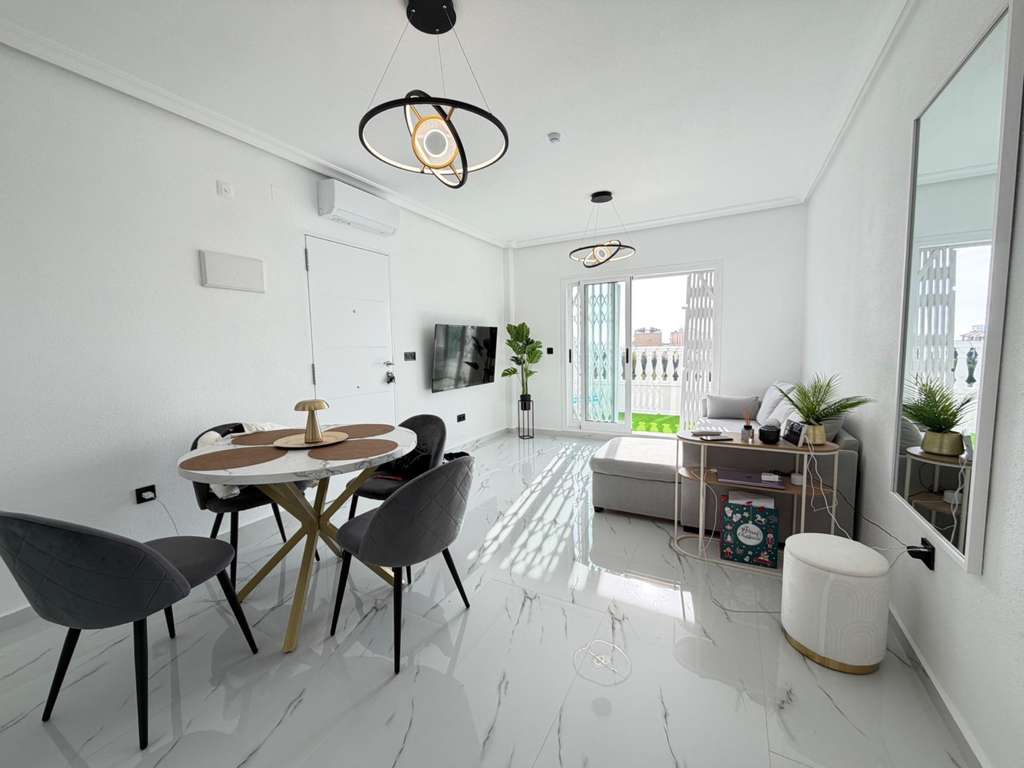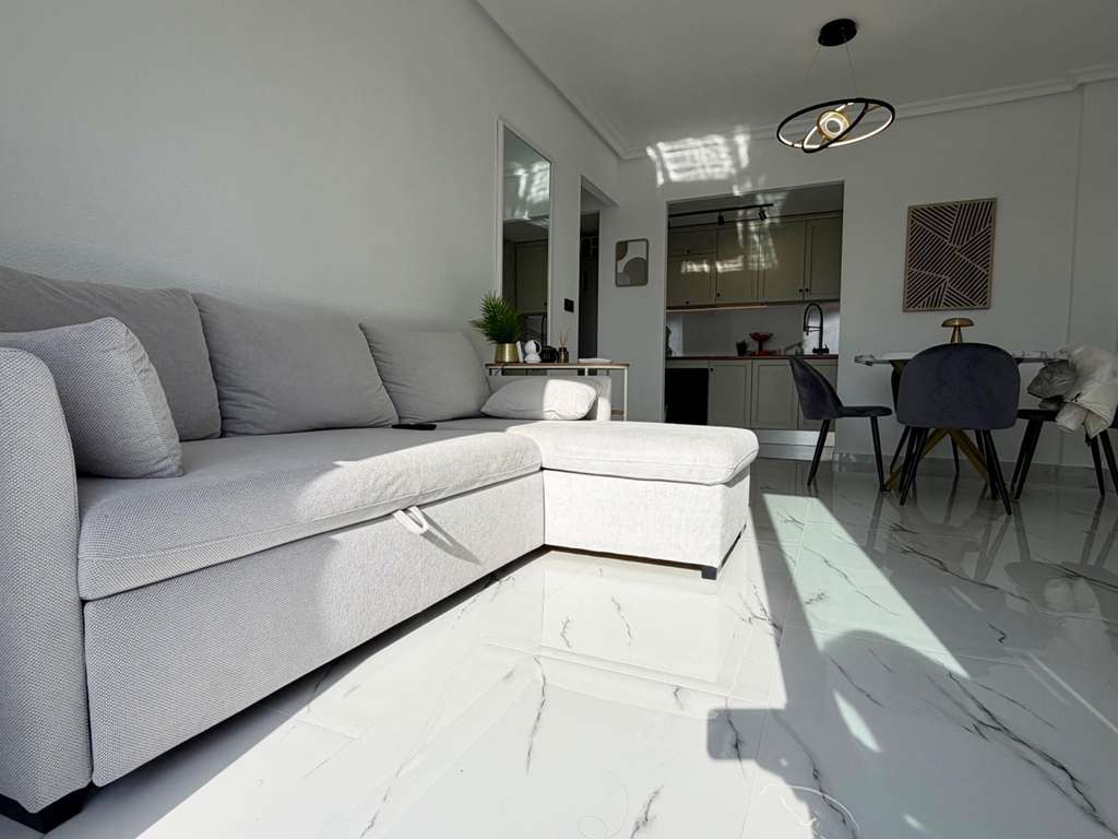 Adéntrate en este ático recientemente renovado, donde el estilo moderno se fusiona con la comodidad y cada rincón ha sido diseñado con cuidado. Ubicado en la codiciada comunidad Zeniamar 1 en Orihuela Costa, este hogar ofrece un ambiente luminoso y acogedor y unas vistas espectaculares al mar desde tu sala de estar. Con 52 m² de espacio habitable cuidadosamente distribuido, más un balcón de 6,5 m², esta propiedad en la primera planta es perfecta para disfrutar del sol. Una entrada independiente garantiza privacidad, mientras que el entorno tranquilo lo convierte en un refugio ideal. Dentro encontrarás: - Una espaciosa habitación doble con armarios empotrados - Un baño contemporáneo y elegante con ducha a ras de suelo - Sala de estar y comedor con luz natural y vistas al mar - Cocina abierta moderna y totalmente equipada - Práctico trastero independiente Características premium para una vida sin esfuerzo: - Electrodomésticos de primeras marcas LG y Samsung - Televisor inteligente de 55 pulgadas con funcionalidad de IA - Lavadora-secadora incluida - Calefacción por suelo radiante y aire acondicionado inverter - Detectores de humo y vigilancia por Wi‑Fi para tu tranquilidad El ático forma parte de un complejo residencial privado con amplias zonas verdes y una piscina, que combina relajación y seguridad. A poca distancia a pie de parques, restaurantes, pistas de pádel, minigolf y tanto escuelas municipales como internacionales. Para ir de compras y ocio, Zenia Boulevard y la playa se encuentran a solo 5 minutos en coche, ofreciendo todo lo que necesitas al alcance. Este ático está listo para mudarte y disfrutar de inmediato: una vivienda costera con estilo, confort, calidad y vistas inmejorables.