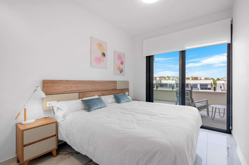 En la codiciada zona de Los Altos, encontrará este elegante ático amueblado, ubicado en la flamante residencia Amanecer X. Con su azotea privada y su soleado balcón, es el lugar perfecto para disfrutar del estilo de vida mediterráneo. La propiedad ofrece 2 dormitorios y 2 baños, distribuidos en casi 71 m² de espacio habitable de diseño elegante. Un luminoso salón de planta abierta conecta a la perfección la moderna cocina con el balcón de 21 m², ideal para tomar el café por la mañana o cenar al aire libre. Además, el amplio solárium de 80 m² ofrece amplio espacio para tomar el sol, recibir invitados o simplemente relajarse en la intimidad. Con dos pérgolas y paneles laterales, disfrutará de la combinación perfecta de sol y sombra en cualquier época del año. El apartamento se entrega amueblado, con muebles de buen gusto y prácticos extras, para que pueda entrar a vivir de inmediato. => Nota: La cocina exterior y los muebles de terraza que se muestran no están incluidos en el precio de venta. Se pueden adquirir por separado como extras opcionales. Como residente de Amanecer X, también se beneficiará de instalaciones comunes de primera clase, como piscina, gimnasio y sauna, diseñadas para que su estancia sea relajante y agradable. Con una ubicación privilegiada cerca de playas, tiendas y restaurantes, esta propiedad combina comodidad y un estilo de vida moderno en la Costa Blanca.