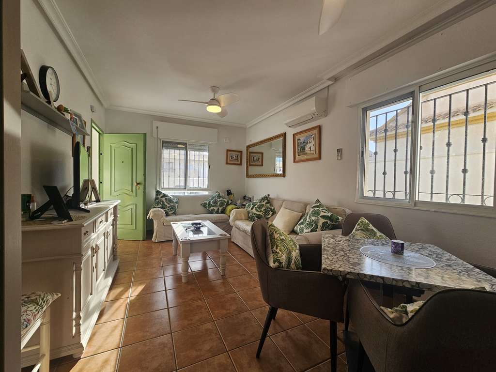 Fantástica oportunidad de comprar un soleado bungalow con orientación sur en el corazón de La Zenia, a pocos minutos de Zenia Boulevard y a tan solo 1500 m de la playa. Esta propiedad cuenta con un espacioso jardín delantero de baldosas, de fácil mantenimiento, con un cobertizo y un trastero. En el interior, se encuentra un amplio salón-comedor con la cocina situada en la parte trasera de la casa, que da a un amplio lavadero y trastero con acceso al cobertizo exterior. También hay dos amplios dormitorios y un baño familiar en la planta baja. En la planta superior se encuentra el dormitorio principal con baño en suite y puertas francesas que dan al soleado solárium, además de un trastero adicional que actualmente se utiliza como cuarto dormitorio. La propiedad forma parte de un codiciado complejo donde los propietarios pueden disfrutar de la impecable piscina y los jardines comunitarios. El centro comercial Zenia Boulevard está a solo 10 minutos a pie, al igual que el mercado de los sábados de Playa Flamenca.