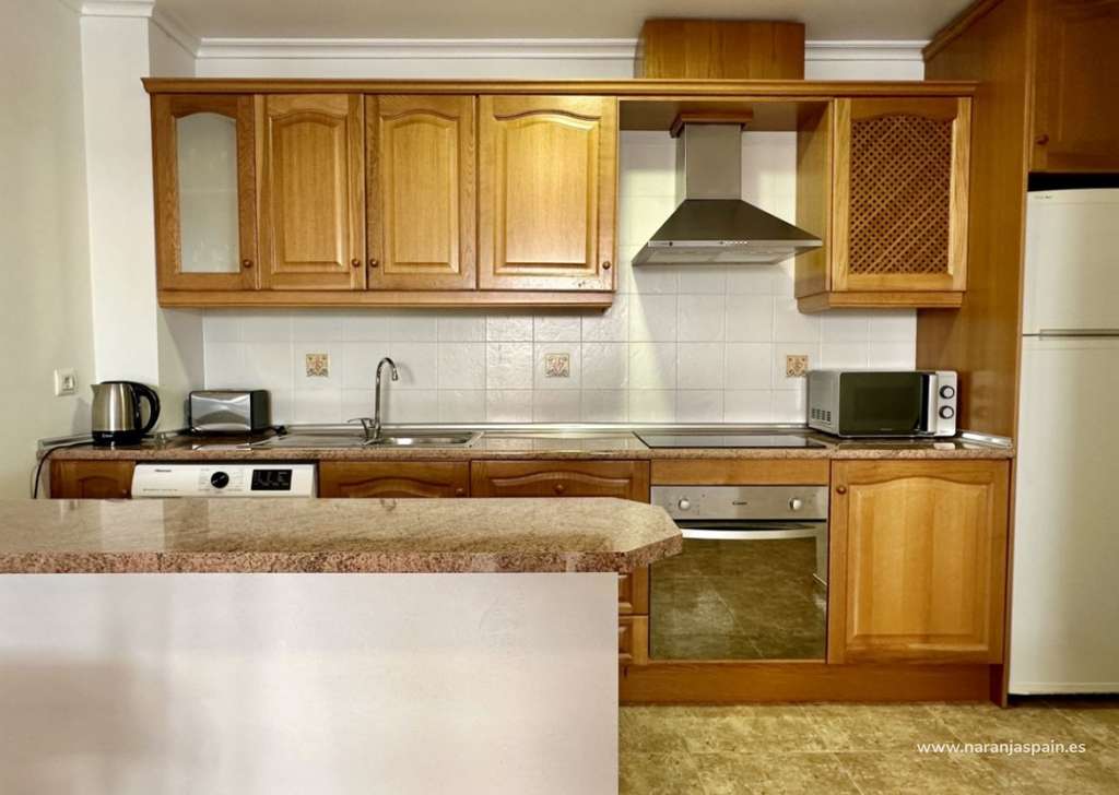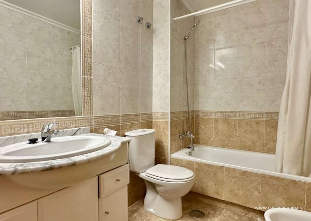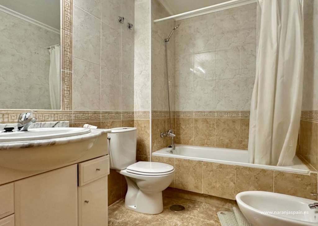 Luminoso y amplio apartamento en primera planta ubicado en la prestigiosa zona de Aguamarina, Orihuela Costa. Cuenta con 97 m² distribuidos en dos dormitorios, un cómodo salón-comedor y una amplia terraza con abundante luz natural. Se vende completamente amueblado y equipado, incluyendo dos nuevos aires acondicionados silenciosos, eficientes y conectados a internet. Incluye plaza de garaje subterránea con acceso mediante ascensor. La urbanización ofrece dos piscinas —una para adultos y otra para niños— además de jacuzzi. La cuota comunitaria incluye internet y servicio de conserjería. Registrado como apartamento turístico, es ideal como vivienda habitual, residencia vacacional o inversión rentable.