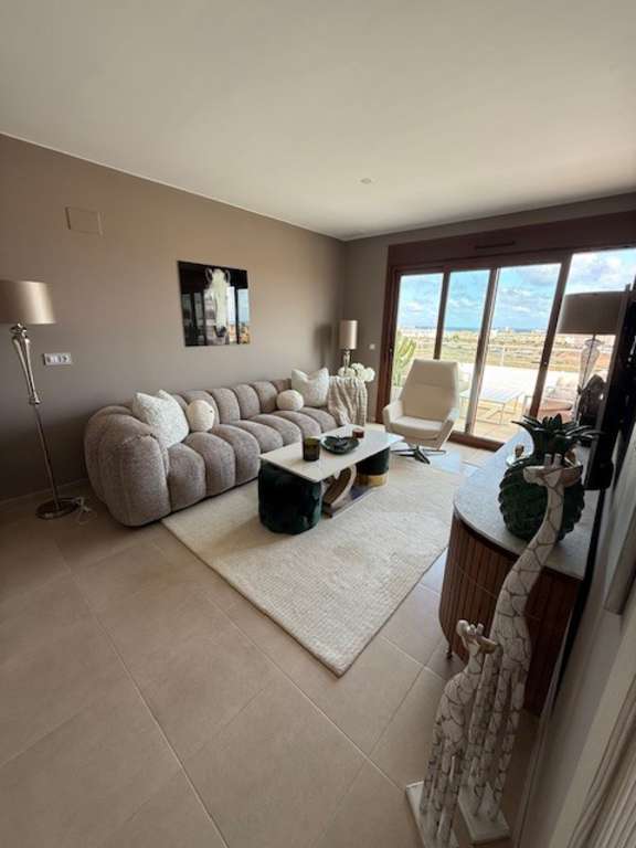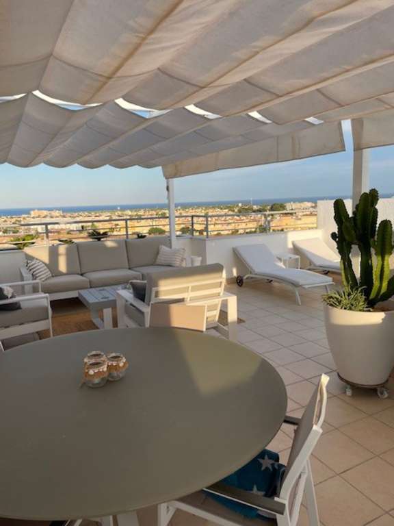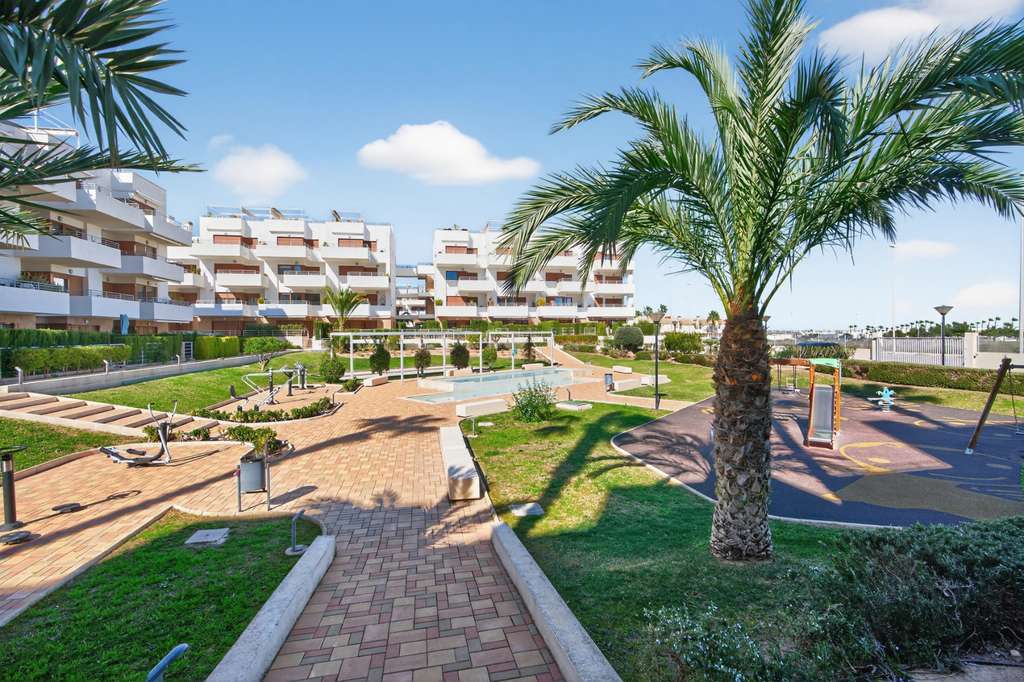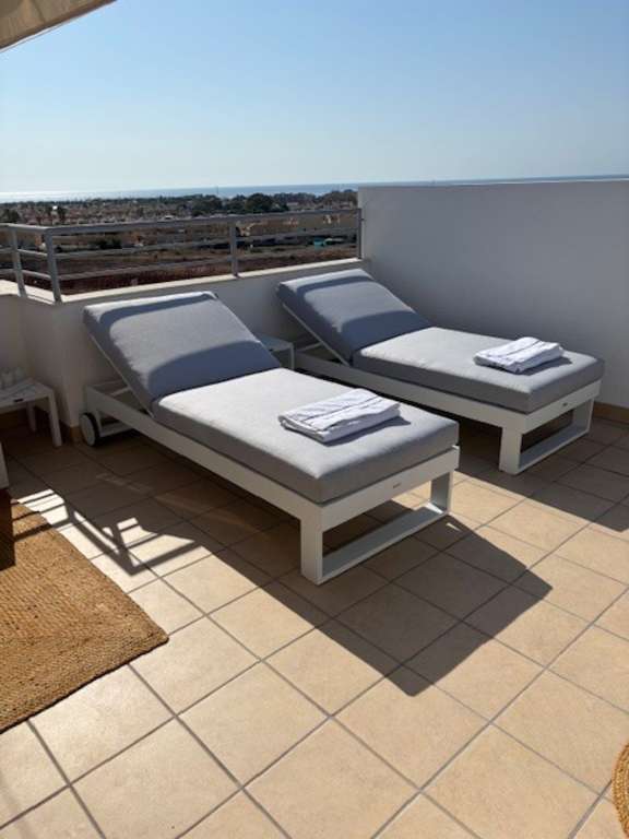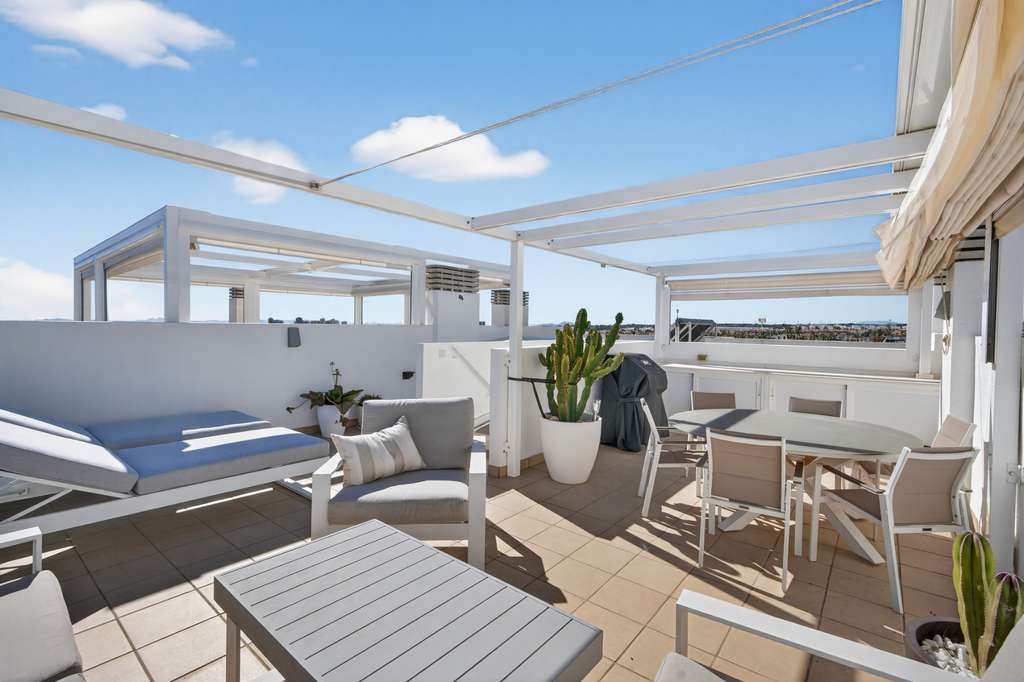 Luminoso y moderno apartamento de diseño con aires de ático en Terrassa de Campamor Bienvenido a este exclusivo ático en el corazón de Terrassa de Campamor. Este elegante apartamento de diseño cuenta con una azotea con vistas panorámicas al Mediterráneo. Con dos luminosos dormitorios, dos modernos baños con suelo radiante y una cocina abierta y minimalista que se integra con un luminoso y acogedor salón con acceso a una terraza privada, este es el hogar ideal para quienes buscan un toque extra. Las zonas comunes son excepcionales: encontrará dos hermosas piscinas, un atractivo parque infantil y un gimnasio bien equipado. Restaurantes y cafeterías están a la vuelta de la esquina, lo que en conjunto proporciona un estilo de vida cómodo y lujoso en el corazón de la Costa Blanca. La ubicación es inmejorable. A solo 10 minutos en coche de la hermosa Playa de Glea y del popular centro comercial La Zenia, conocido en la Costa Blanca. Además, en las inmediaciones hay varios campos de golf de renombre, como Villa Martín, Campoamor, Las Ramblas y Las Colinas, elegido el mejor resort de España durante cinco años consecutivos. Contáctenos hoy mismo para concertar una visita a esta hermosa propiedad.