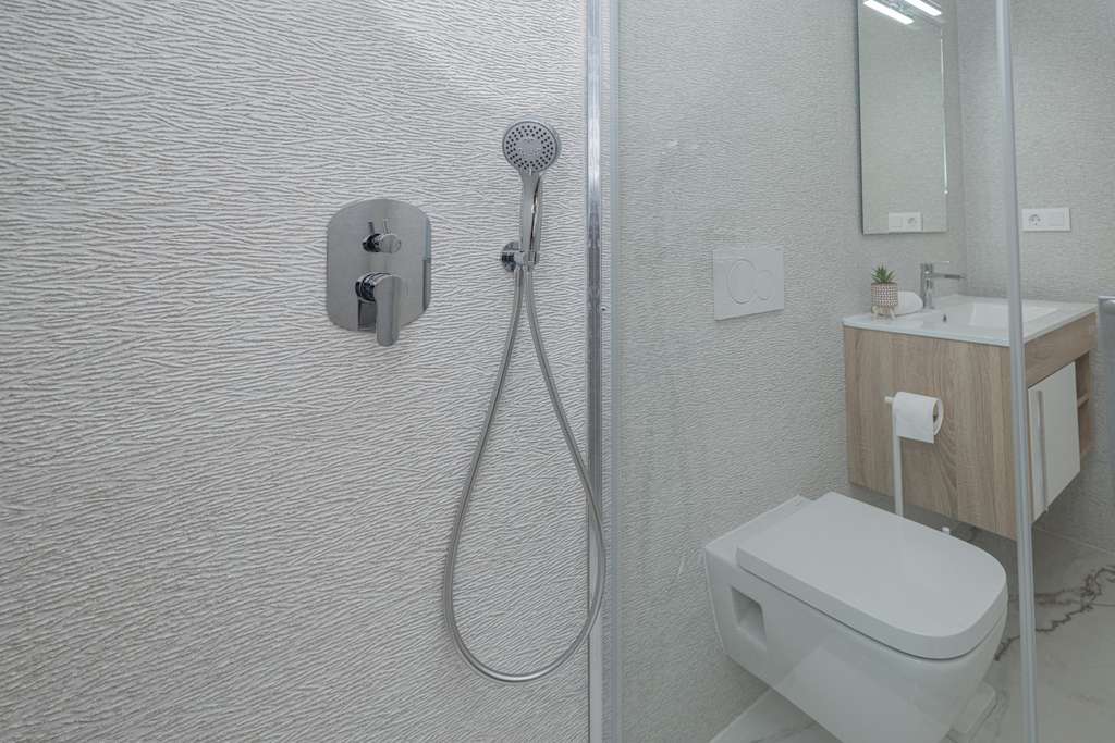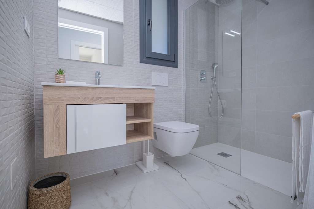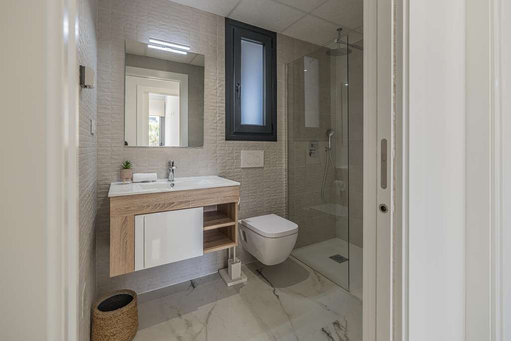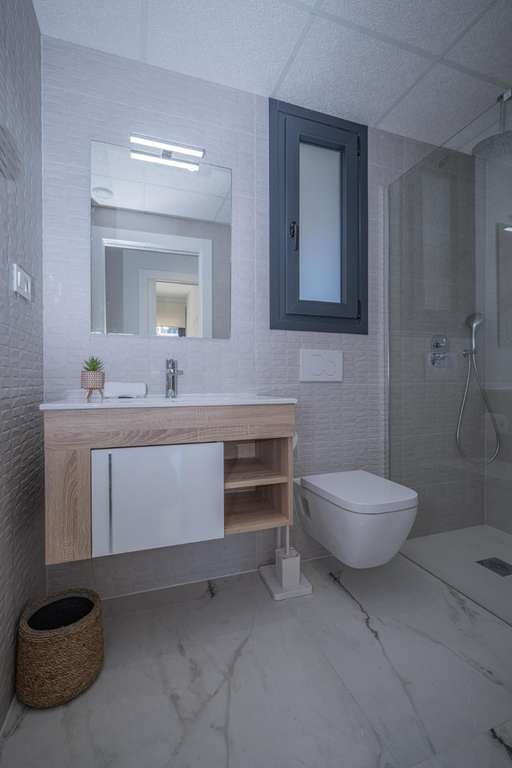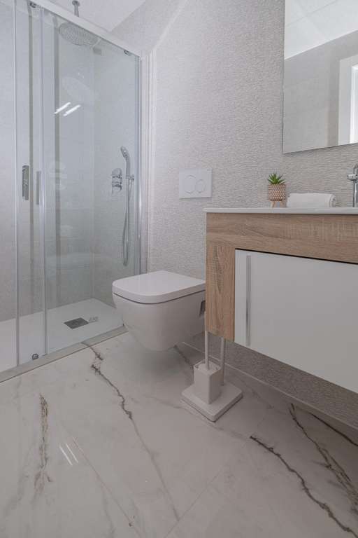 La vivienda dispone de dos amplios dormitorios con buena iluminación natural y dos baños completos equipados con ducha y acabados contemporáneos. La zona de día ofrece un espacio abierto y luminoso donde la cocina moderna, de concepto abierto, se integra perfectamente con el salón-comedor, creando un ambiente cómodo y actual, ideal tanto para la vida diaria como para recibir invitados.