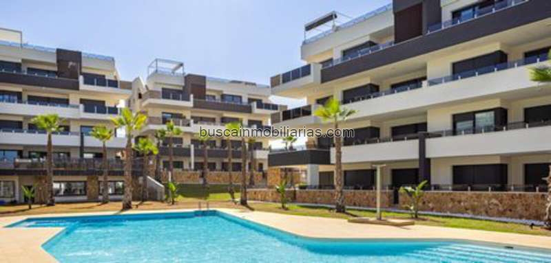Descubra este luminoso y moderno apartamento en segunda planta en un proyecto contemporáneo de obra nueva en Orihuela Costa, ¡con menos de seis meses de antigüedad! Diseñado para el máximo confort, combina líneas limpias, espacios abiertos y acabados modernos, creando una sensación de amplitud y bienestar en cada rincón. Al entrar, le recibe un salón-comedor de planta abierta, bañado por la luz natural de la terraza. La distribución abierta se integra a la perfección con la cocina americana, totalmente equipada con electrodomésticos de última generación, ideal para quienes buscan funcionalidad sin renunciar al estilo. El apartamento cuenta con dos amplios dormitorios, ambos con armarios empotrados que maximizan el espacio y aportan elegancia al diseño general. Los dos modernos y elegantes baños cuentan con acabados de alta calidad, creando un ambiente relajante y sofisticado. Comodidades que marcan la diferencia: Esta propiedad está lista para entrar a vivir y se vende completamente amueblada, como se muestra en las fotos.Decorada con buen gusto, está diseñada para crear un ambiente cálido y acogedor.El aire acondicionado proporciona comodidad durante todo el año. Puerta de seguridad e intercomunicador para mayor seguridad. Acceso directo en ascensor a todas las plantas.Espacios exteriores perfectos para disfrutar del clima mediterráneo. El complejo ofrece una hermosa piscina comunitaria, un lugar ideal para relajarse, tomar el sol o pasar tiempo en familia. La propiedad también incluye un garaje subterráneo privado con una plaza de aparcamiento, así como un trastero, perfecto para almacenamiento adicional. Ubicación estratégica en Orihuela Costa La propiedad se encuentra en una ubicación privilegiada, rodeada de servicios y atracciones:Playa: a solo 8 minutos, ideal para excursiones de un día.Zonas de ocio, restaurantes y tiendas: a 3 minutos.Campos de golf internacionales: a 7 minutos.Aeropuerto: a 40 minutos, con fácil acceso a vuelos nacionales e internacionales.